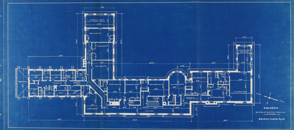 / Clayton Mark House, Lake Forest, Illinois, Second Floor Plan by Howard Van Doren Shaw