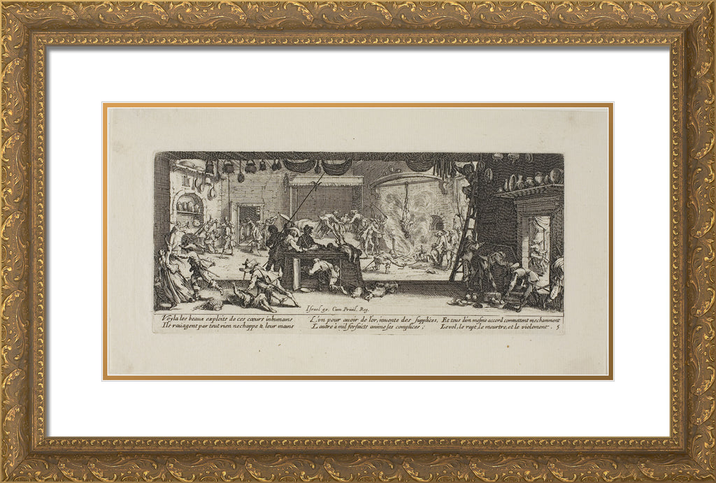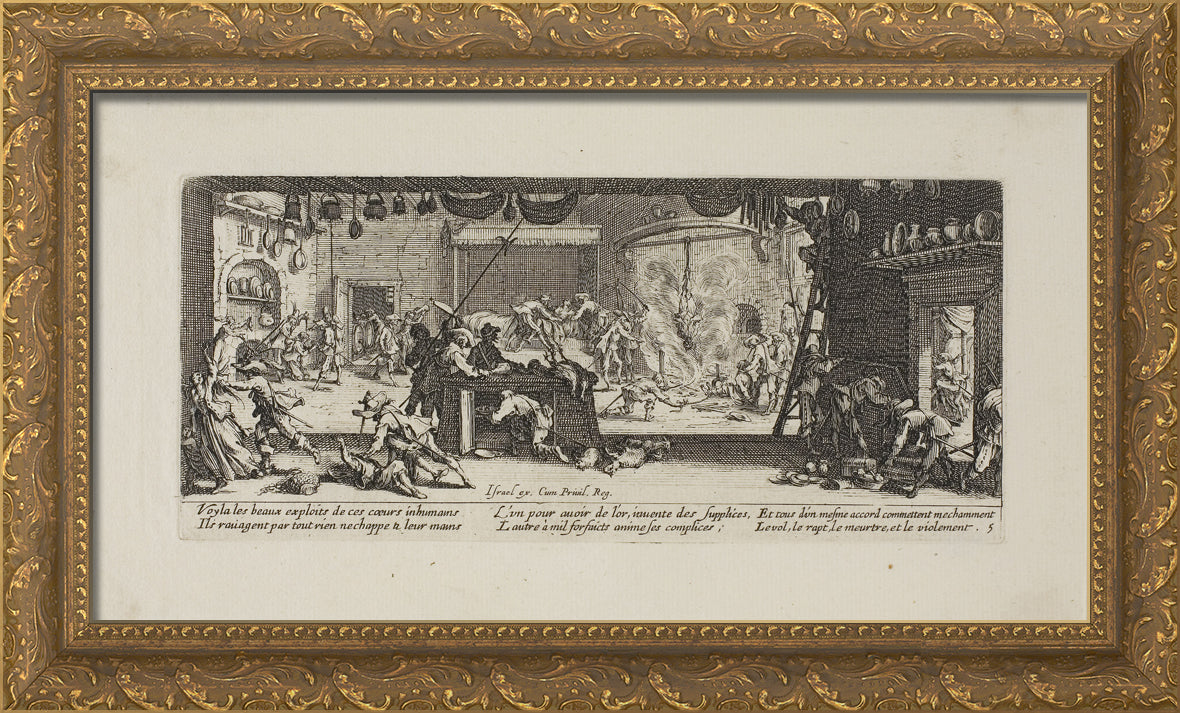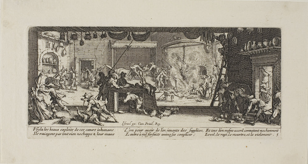/ Plundering a Large Farmhouse, plate five from The Miseries of War by Jacques Callot