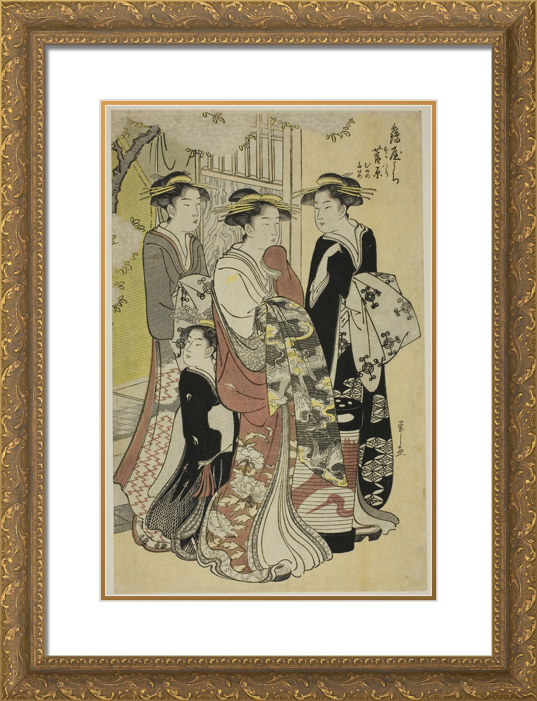 / Sugawara of the Tsuruya with Attendants Mumeno and Takeno by Chobunsai Eishi
