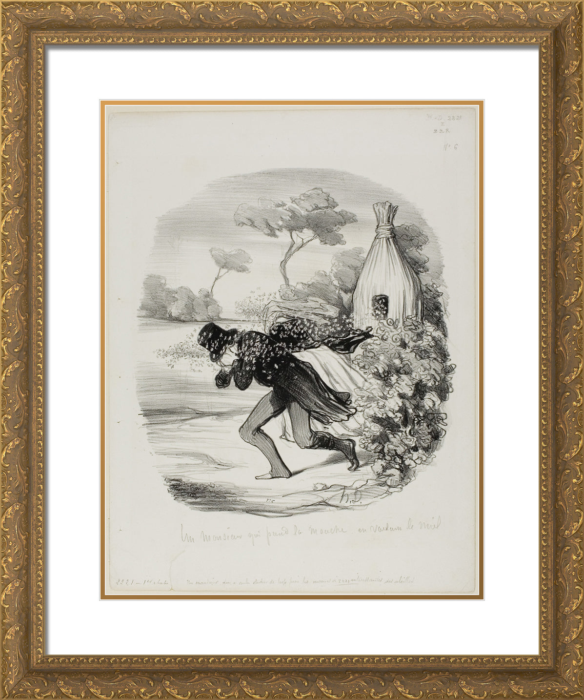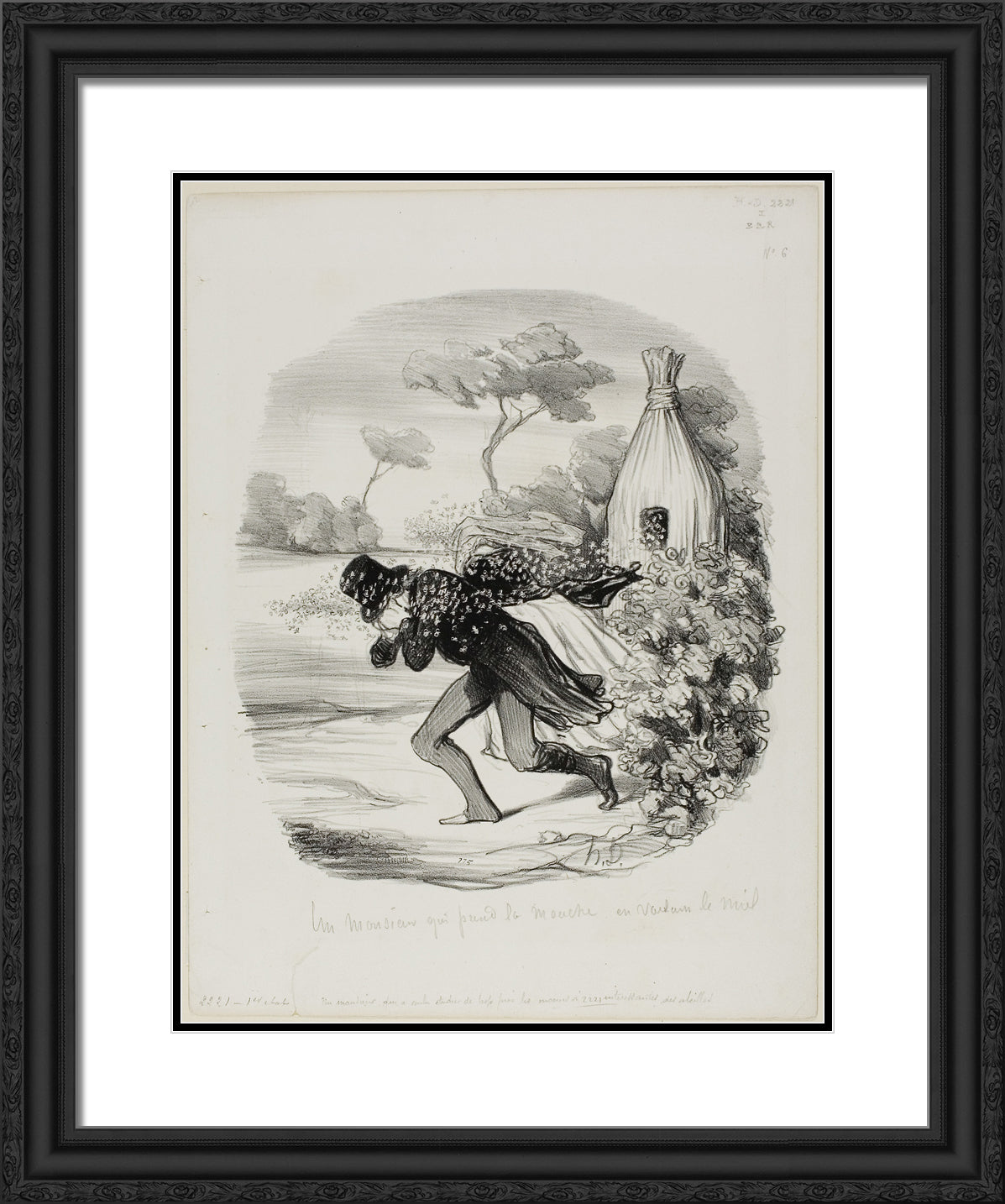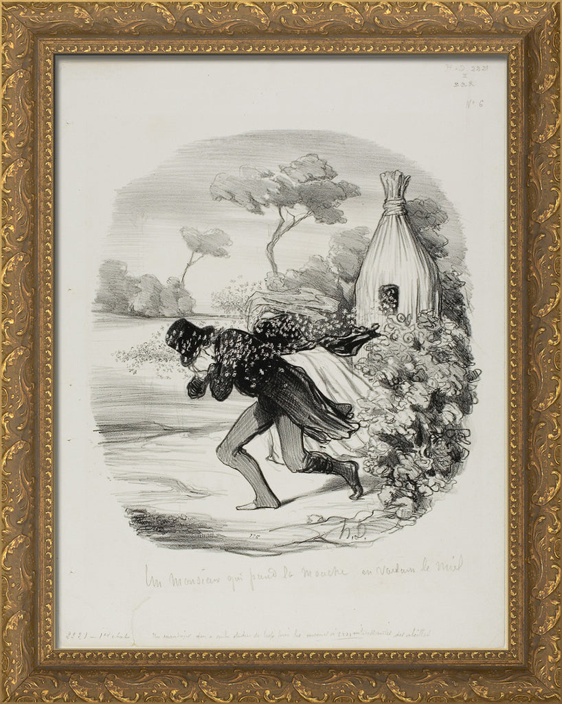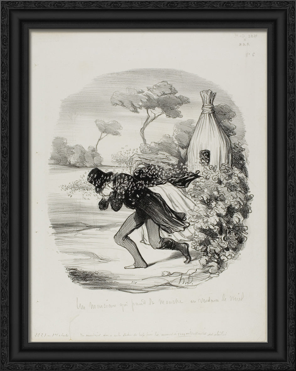 / A Gentleman Who Wanted to Study the Habits of Bees too Closely, plate 6 from Pastorales by Honore-Victorin Daumier