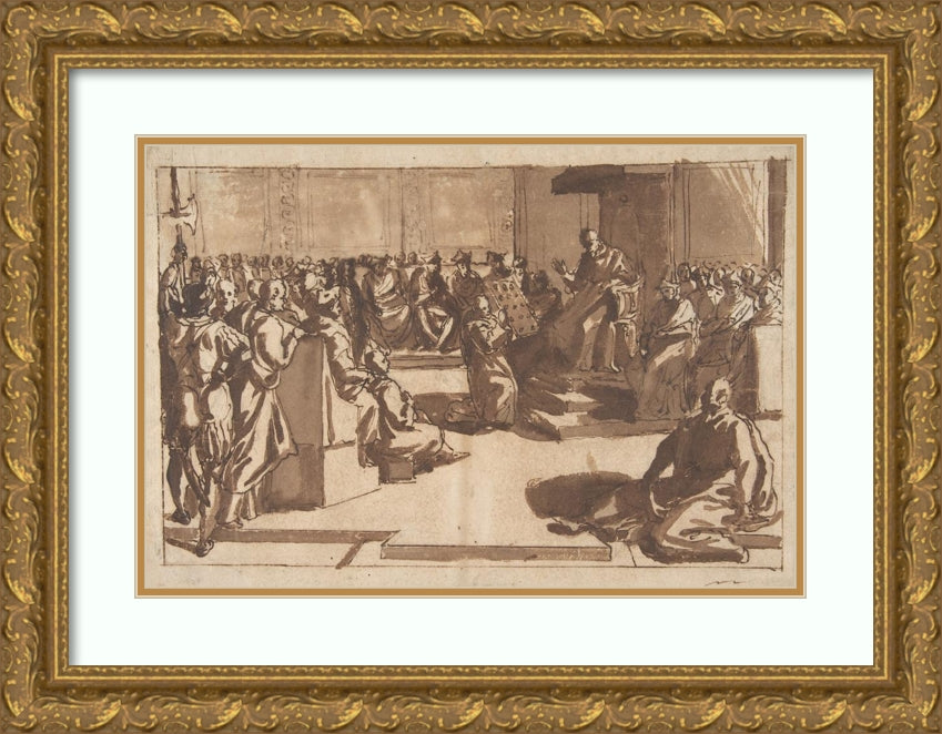 / An Ecclesiastic Blessing a Book Before the Sacred College. (1580-90)