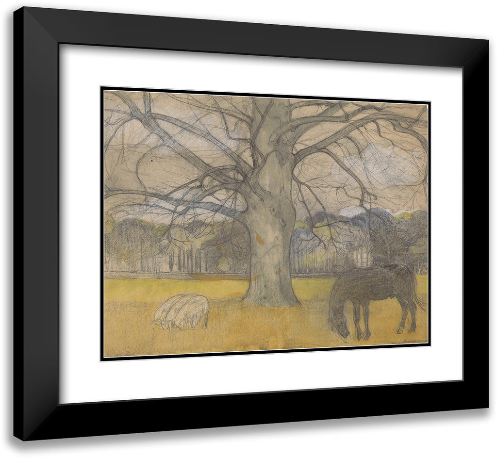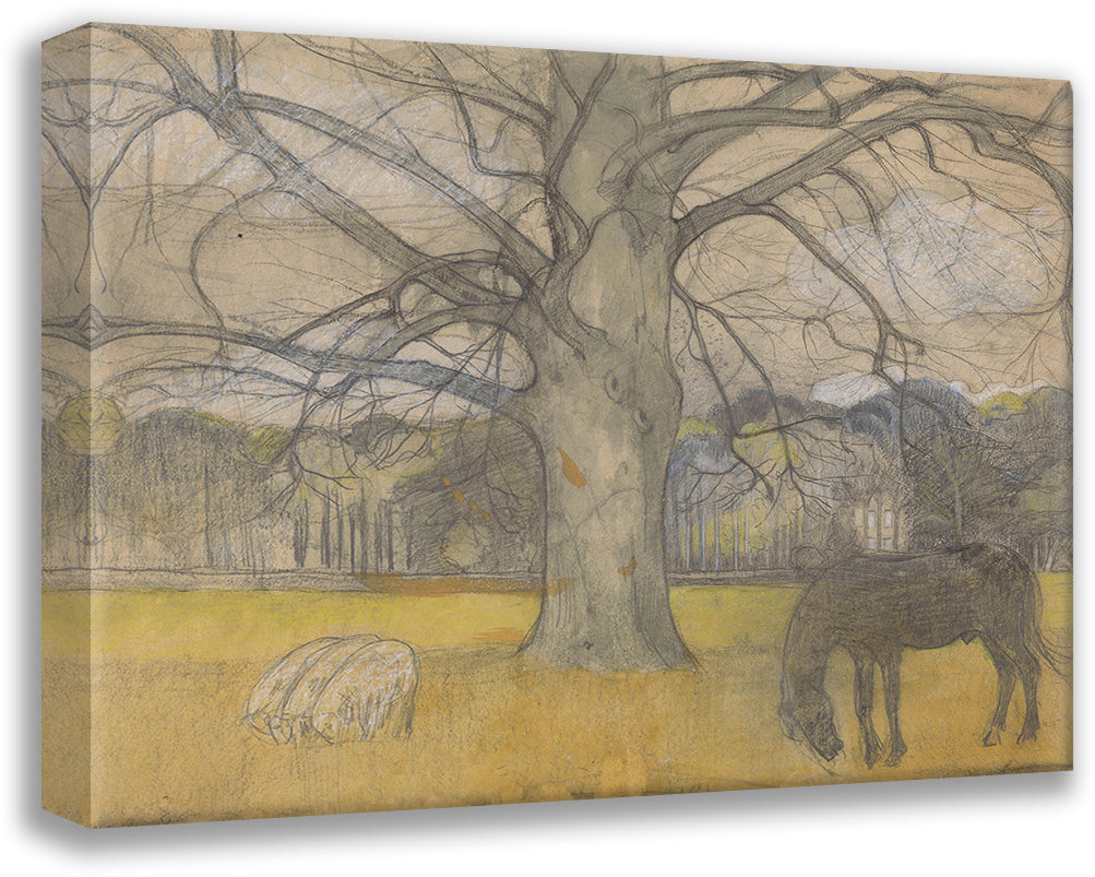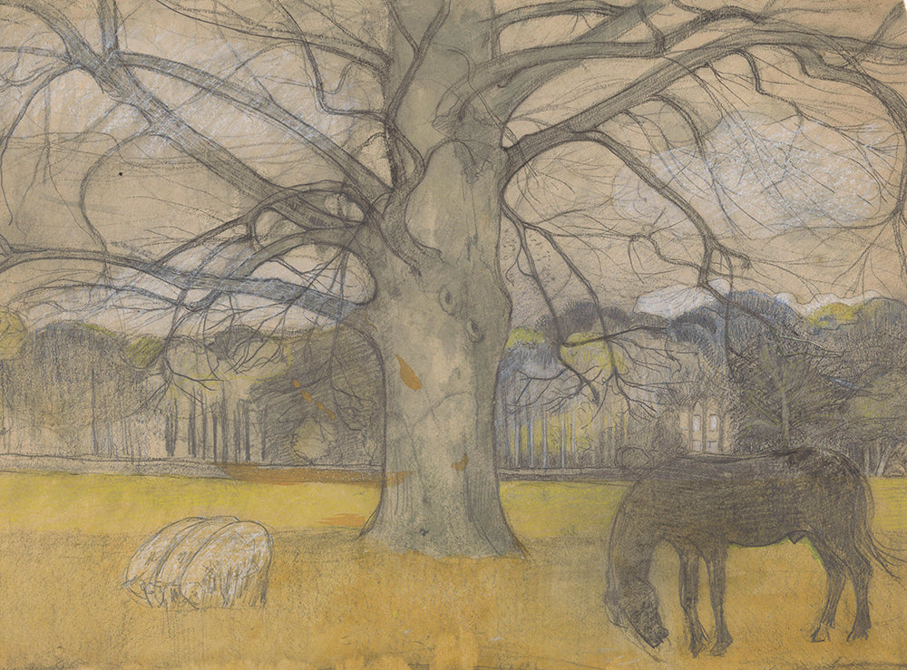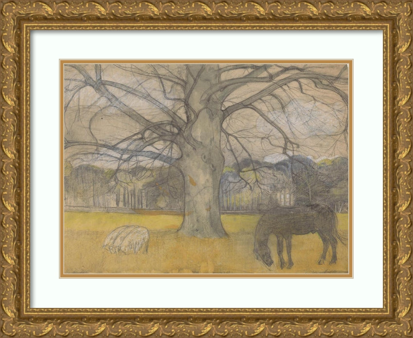 / Bare Beech on a Meadow with Sheep and a Horse (1897)