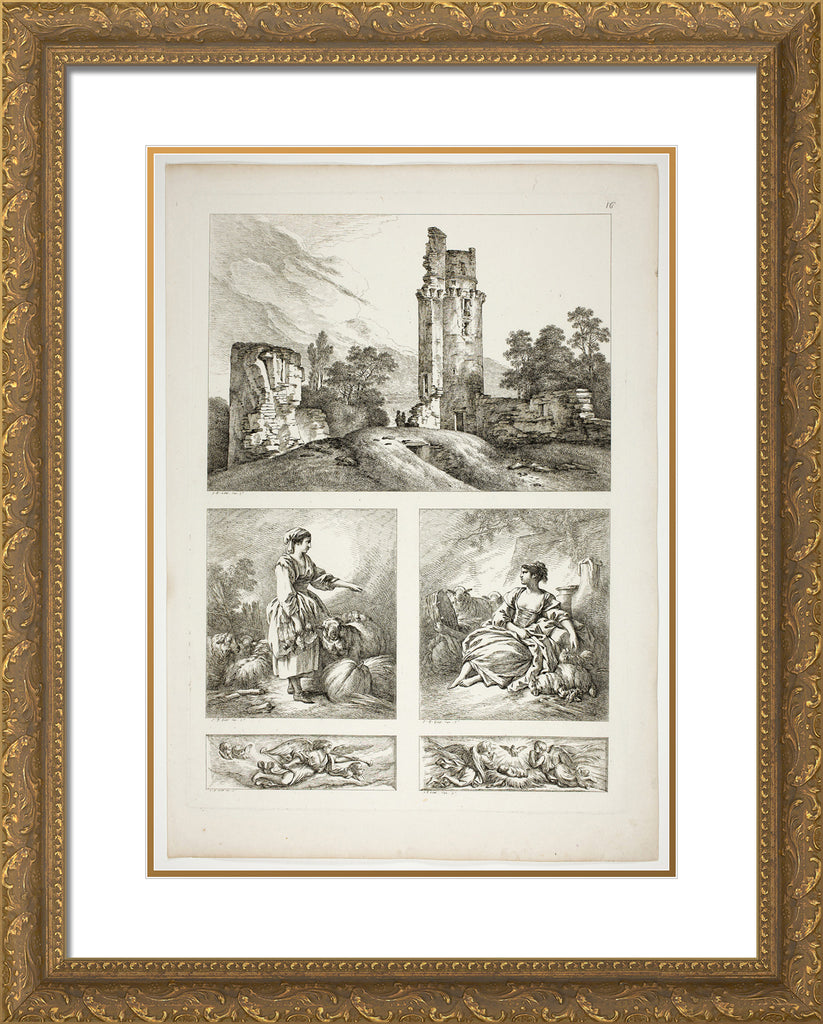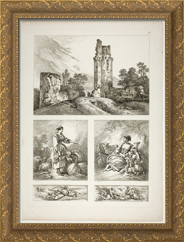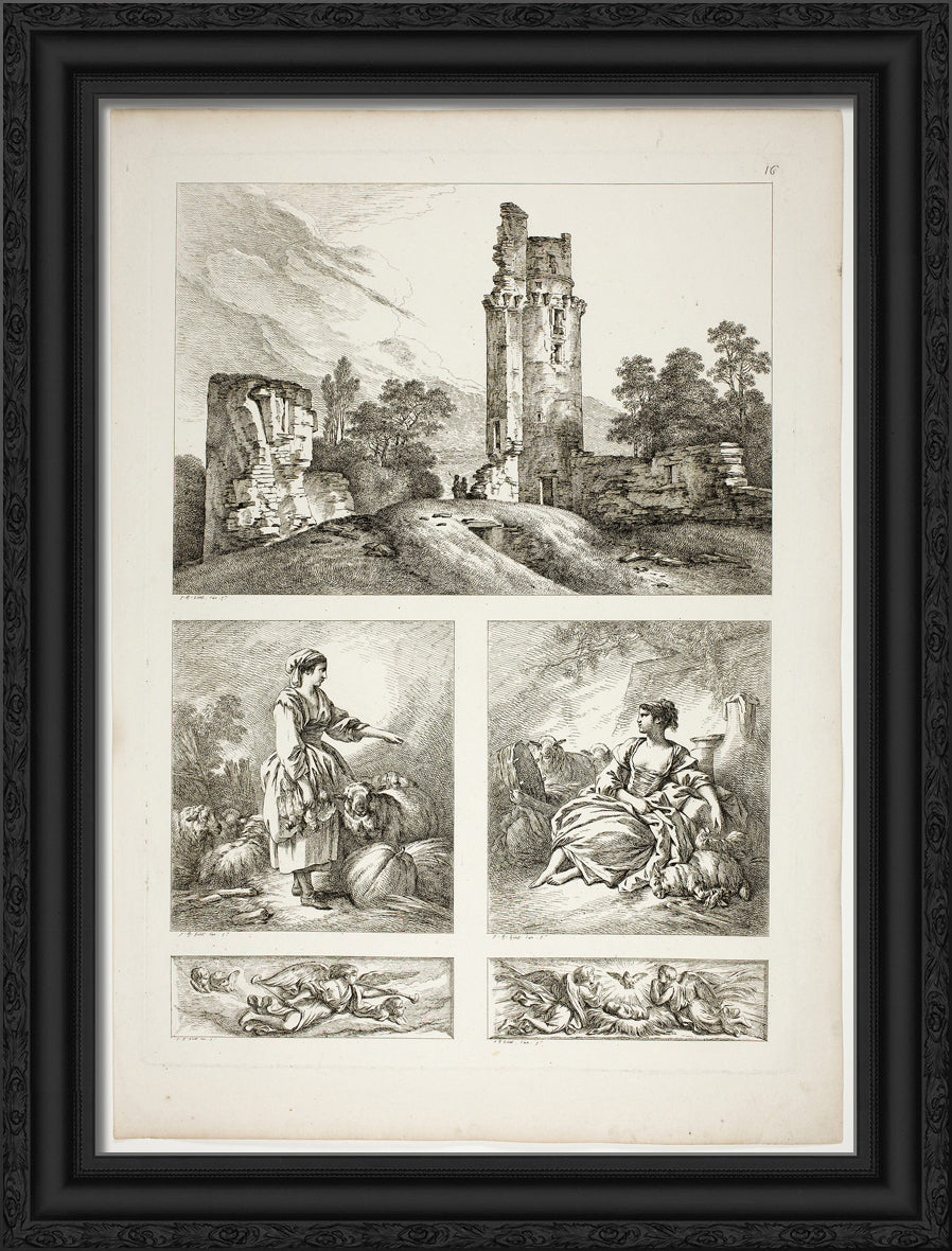 • Plate Sixteen of 38 from Oeuvres de J. B. Huet by Jean Baptiste Huet