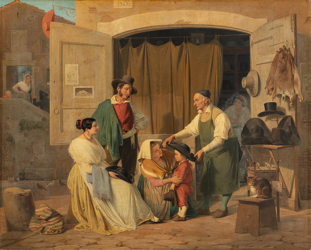 / Roman Peasants Buying a Hat for Their Little Son, Who is to Be an Abbate (1840)