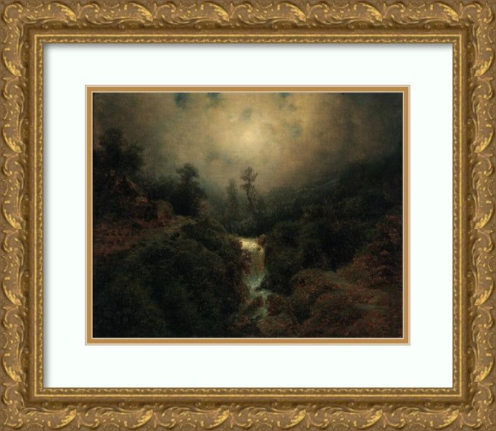 Romantic Moon Landscape with Hikers