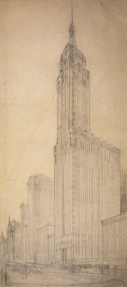 • Carbon and Carbide Building, Chicago, Illinois, Perspective Sketch by Burnham Brothers, Architects