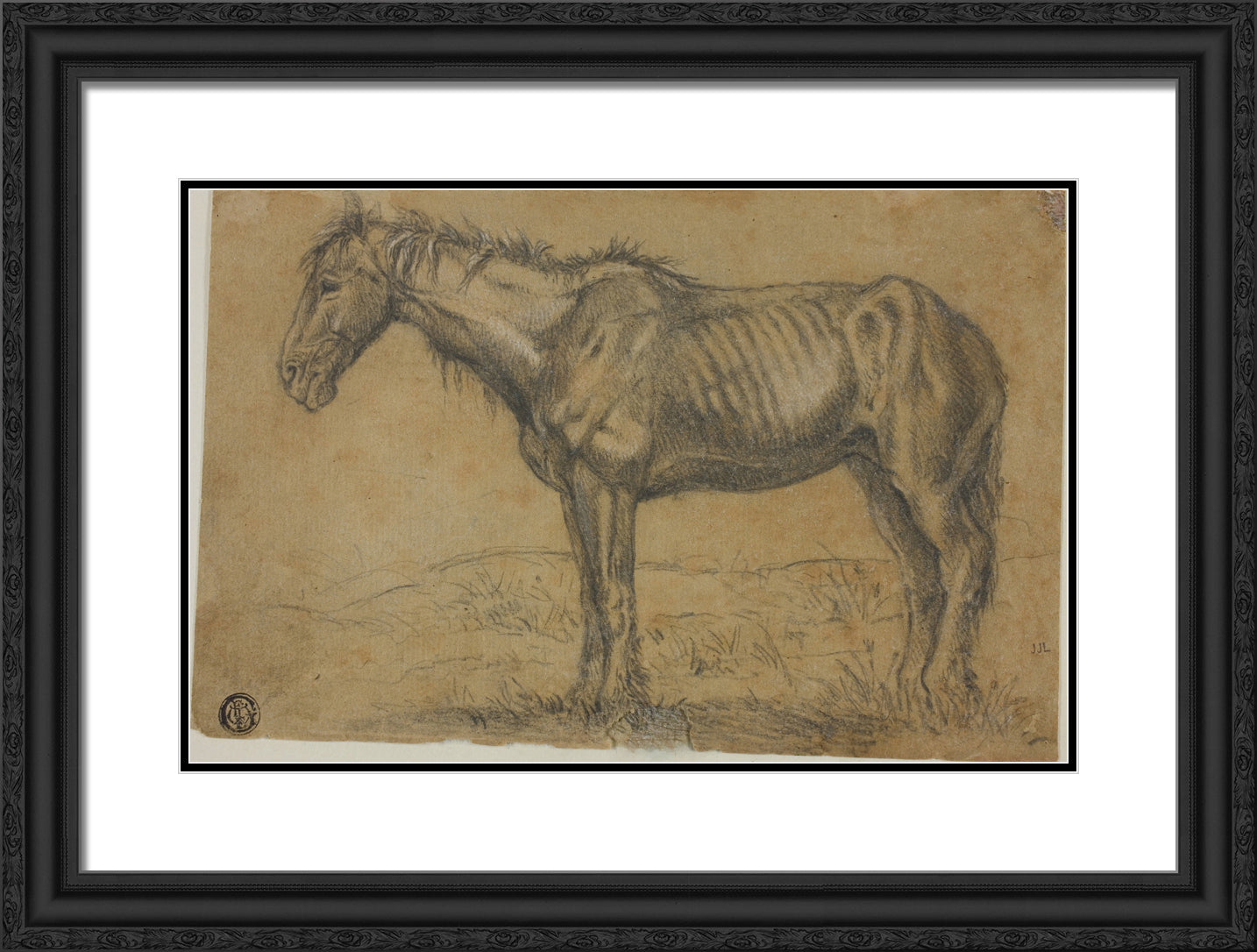 / Emaciated Horse (recto); Frontal View of a Horse (verso) by Charles Emile Jacque