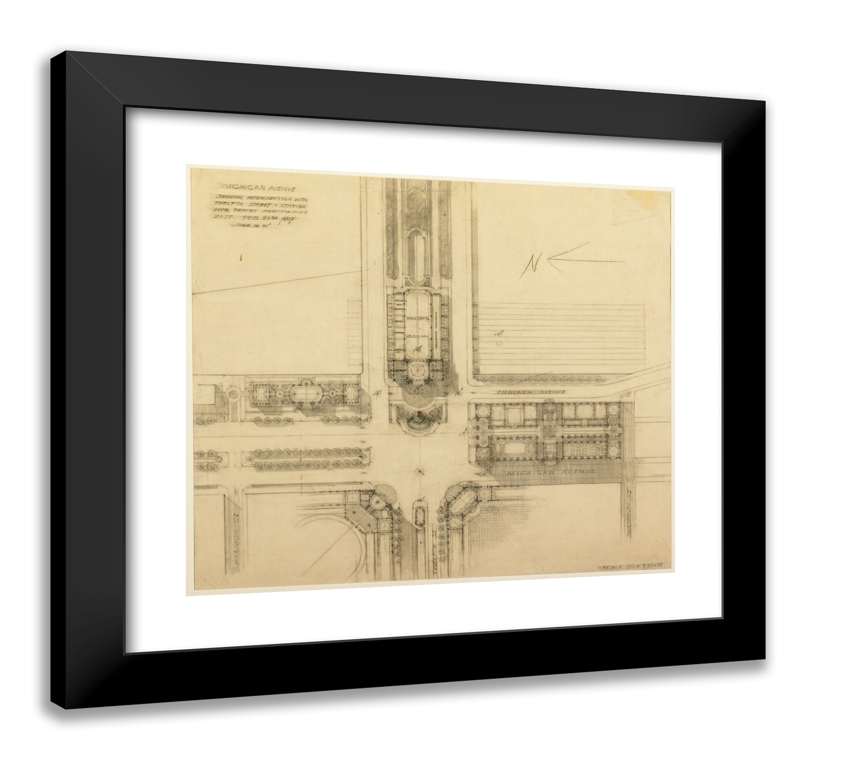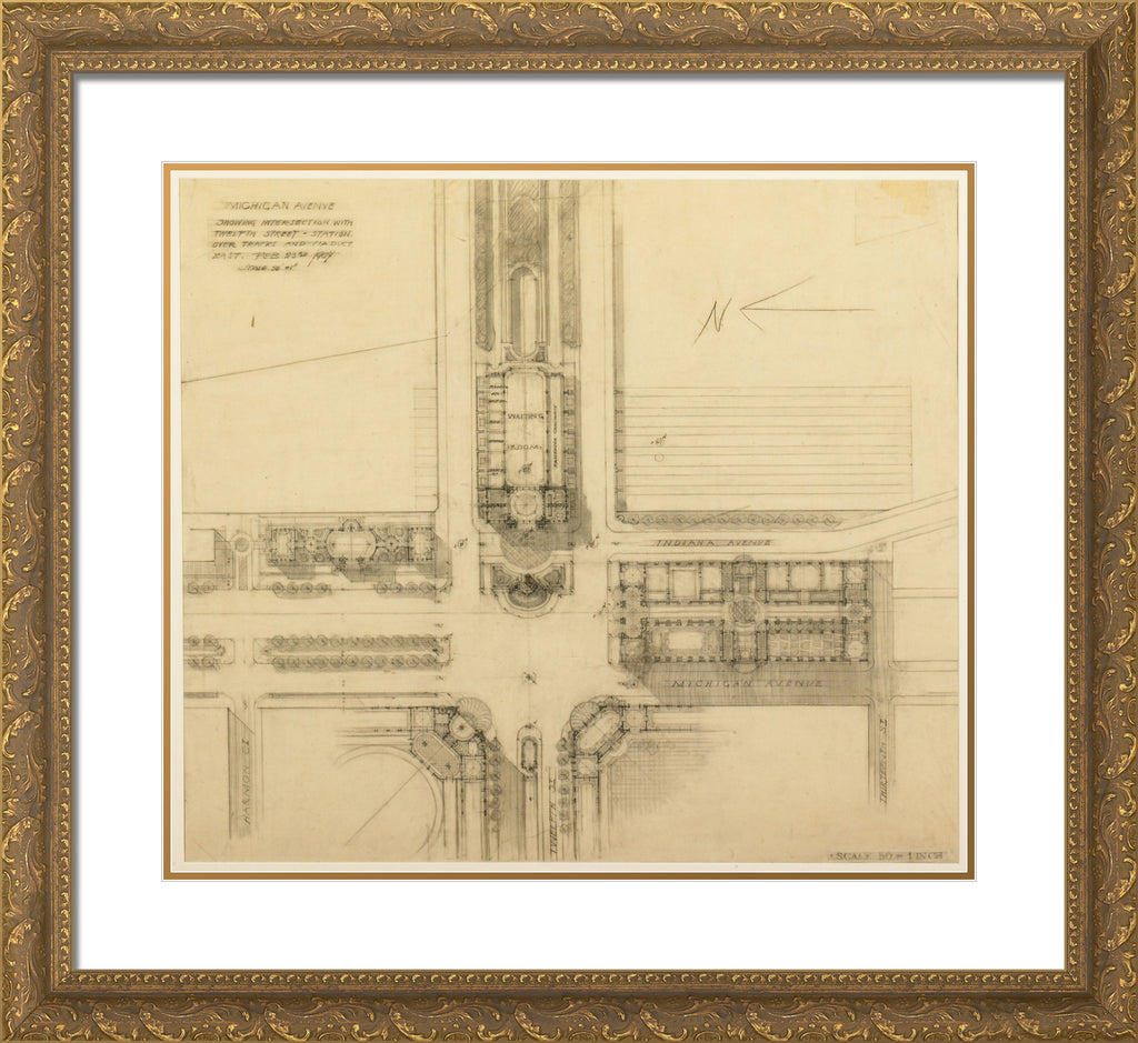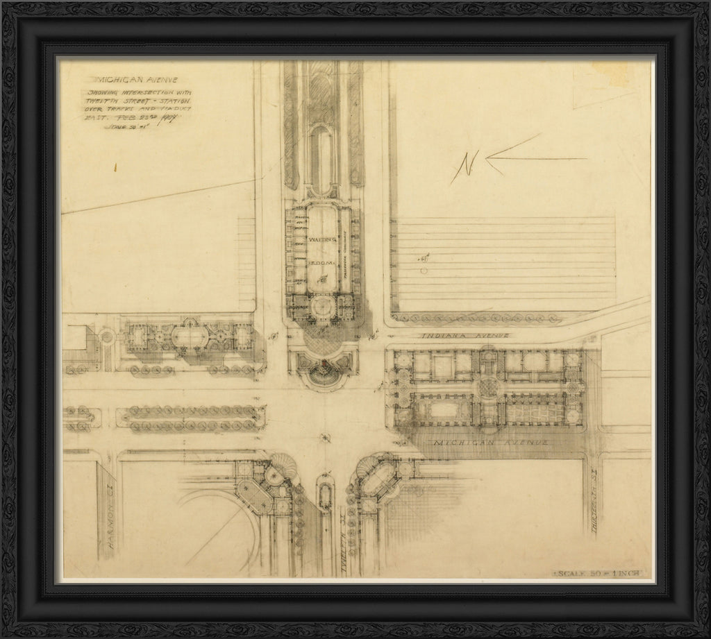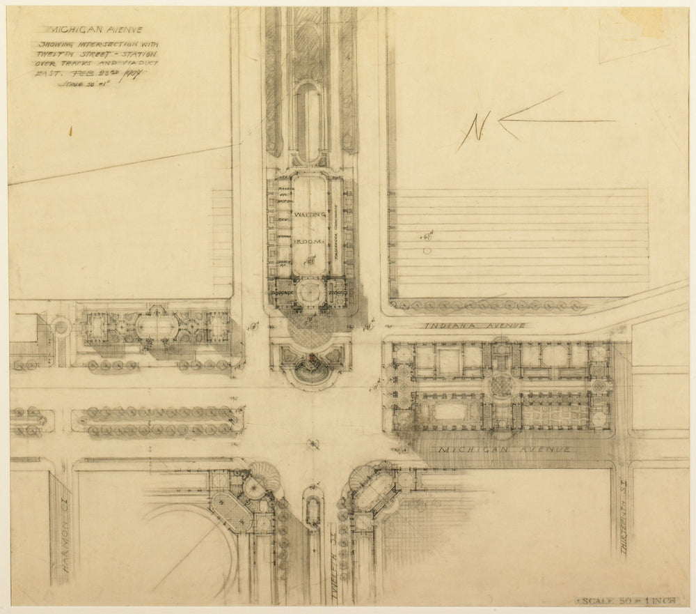/ Plate 119 from The Plan of Chicago, 1909: Chicago. Sketch Plan of the Intersection of Michigan Avenue and Twelfth Street by Daniel Hudson Burnham