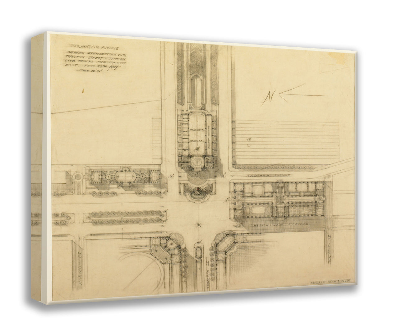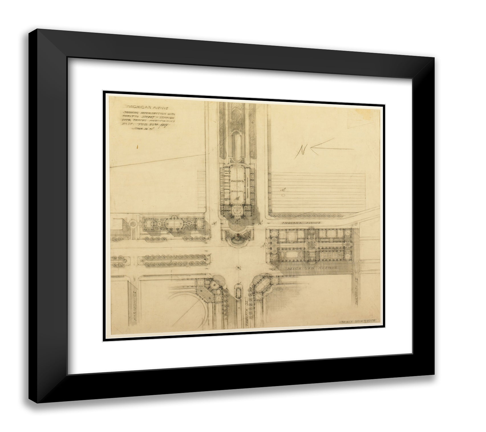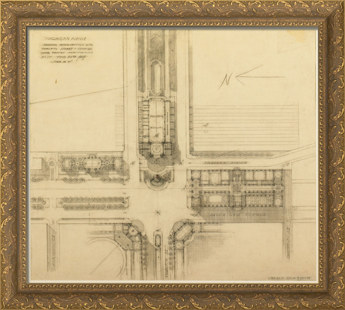 / Plate 119 from The Plan of Chicago, 1909: Chicago. Sketch Plan of the Intersection of Michigan Avenue and Twelfth Street by Daniel Hudson Burnham