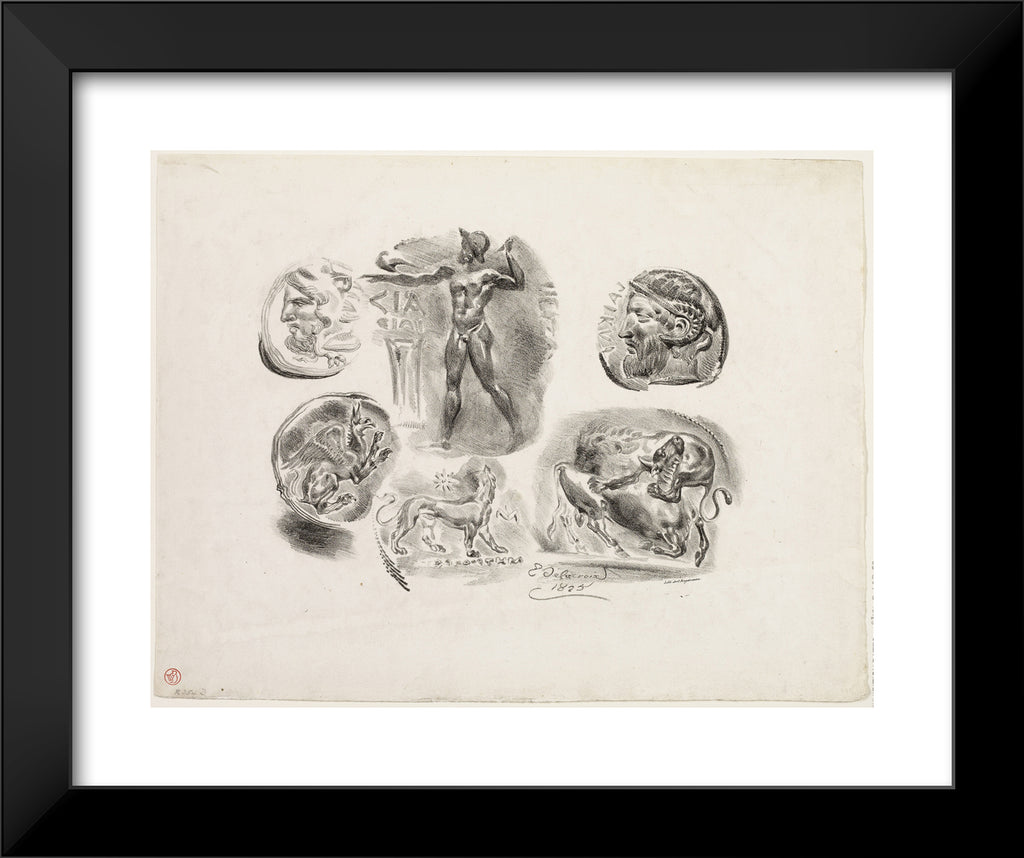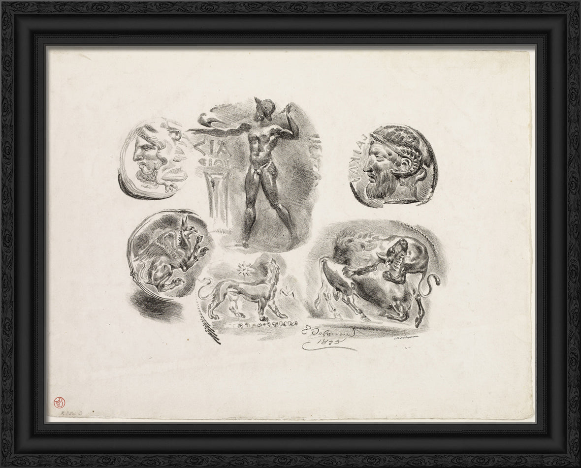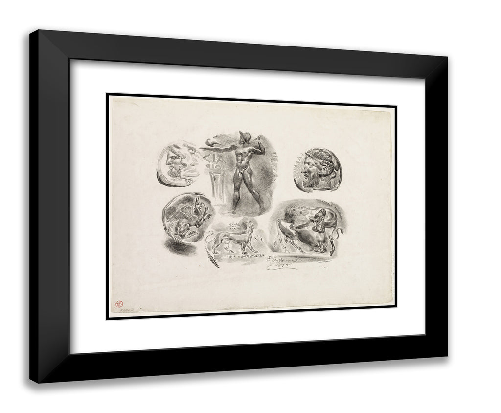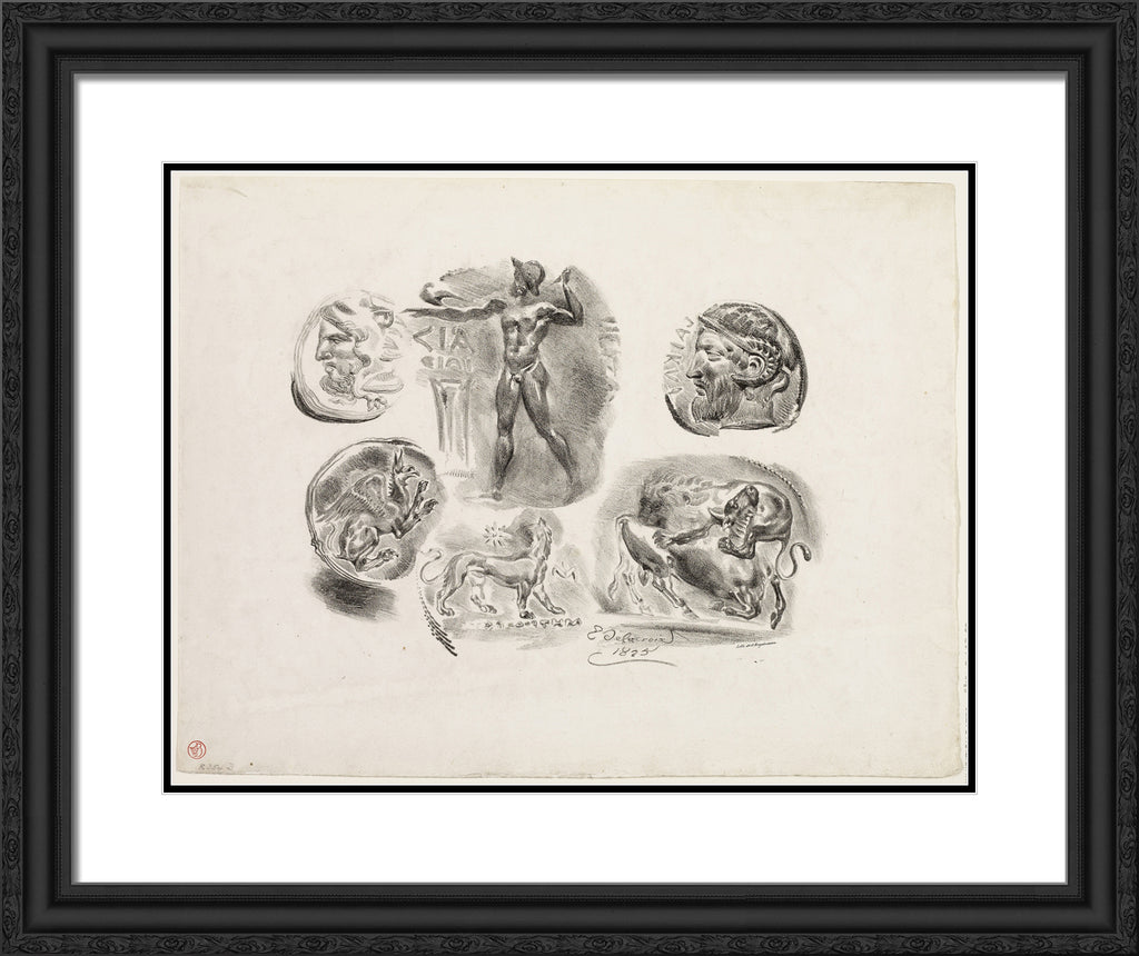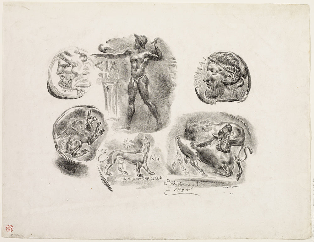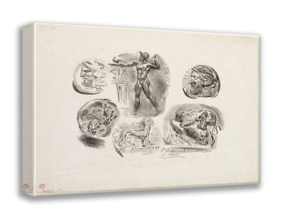 Sheet of Six Antique Medals by Eugene Delacroix
