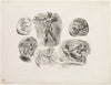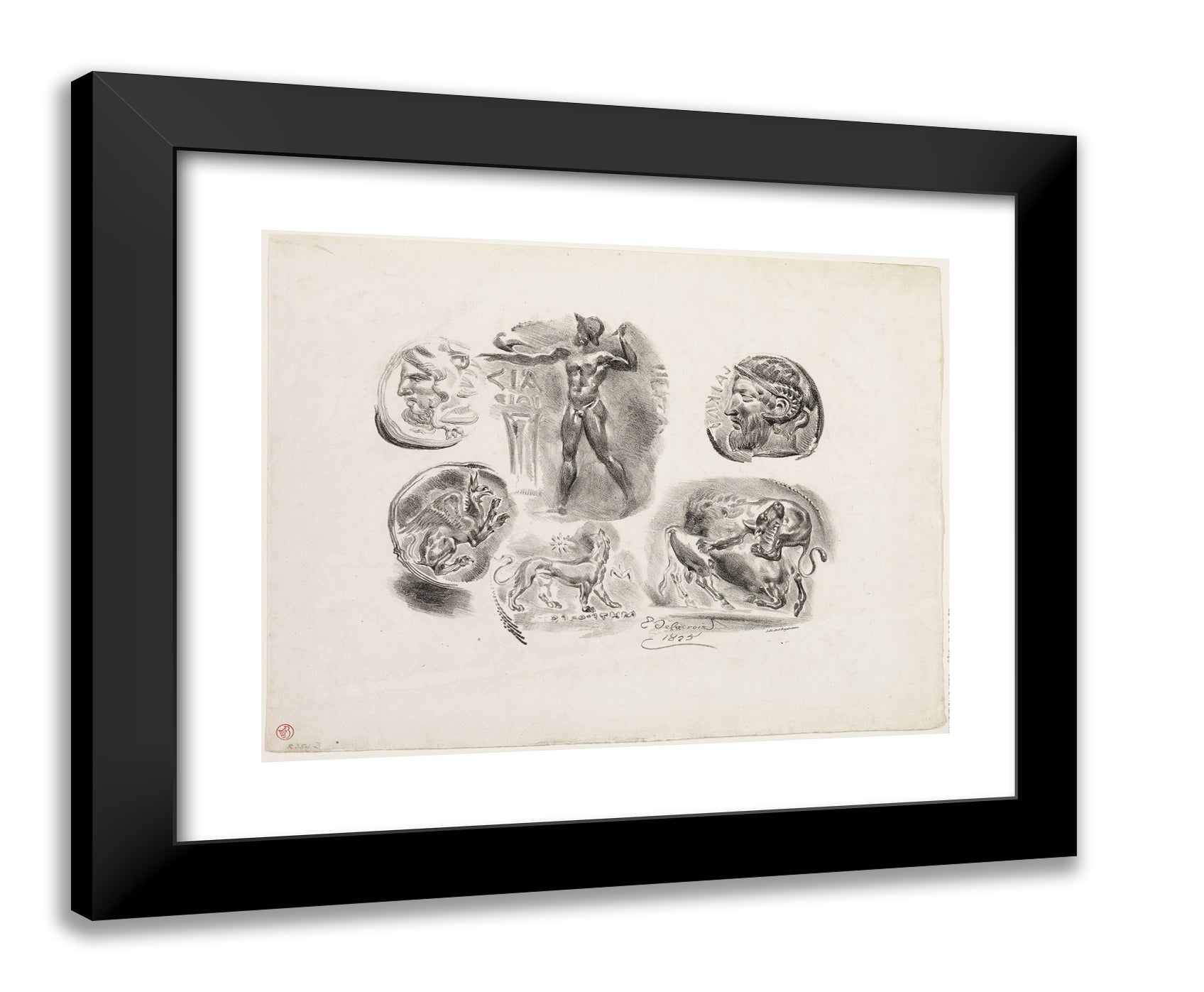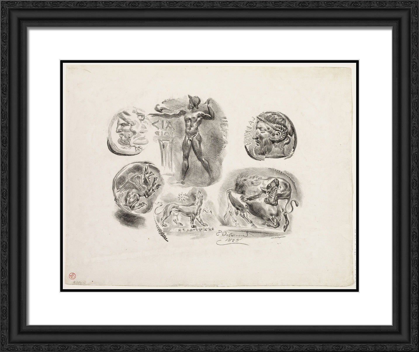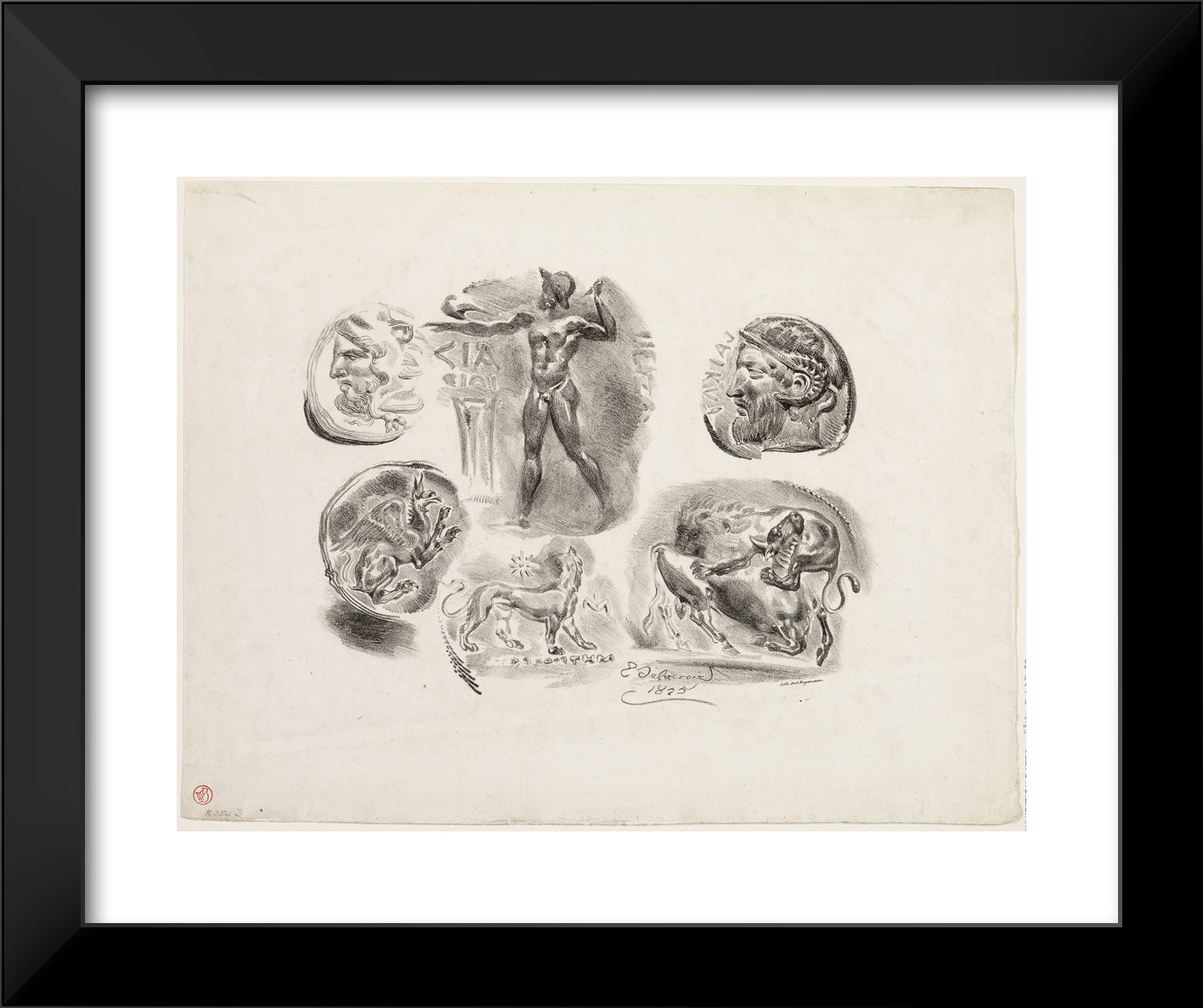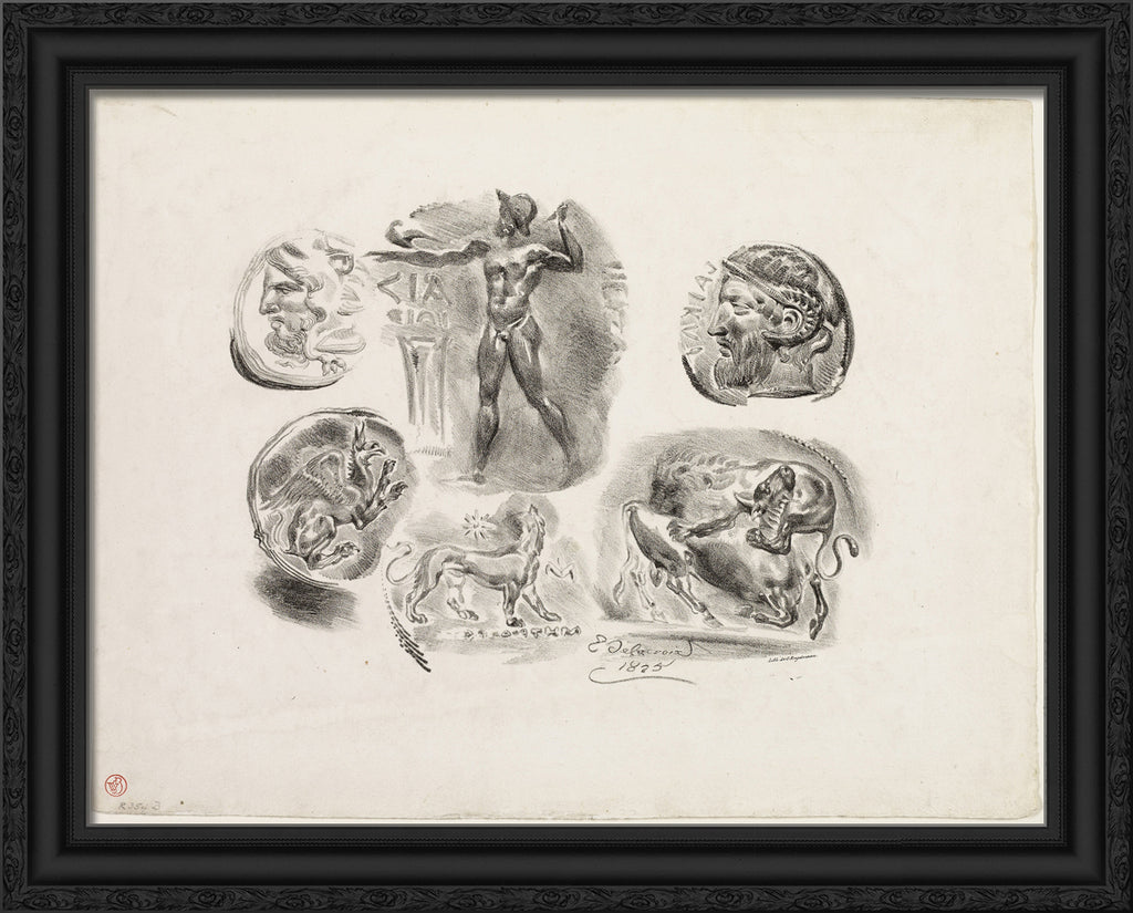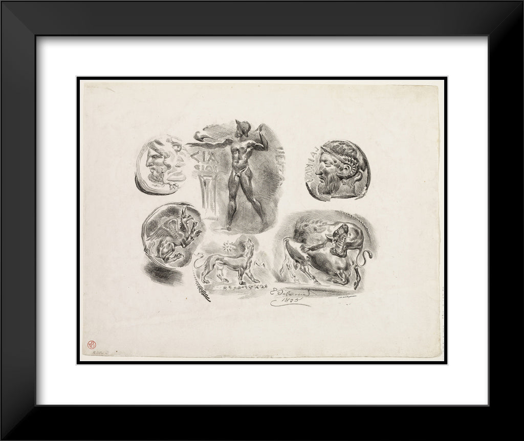 Sheet of Six Antique Medals by Eugene Delacroix