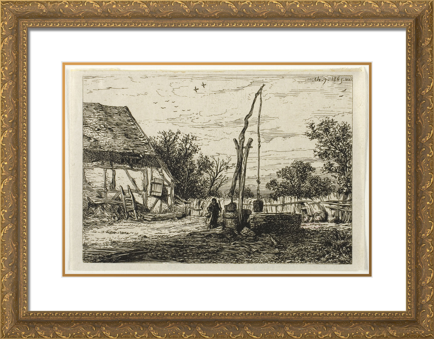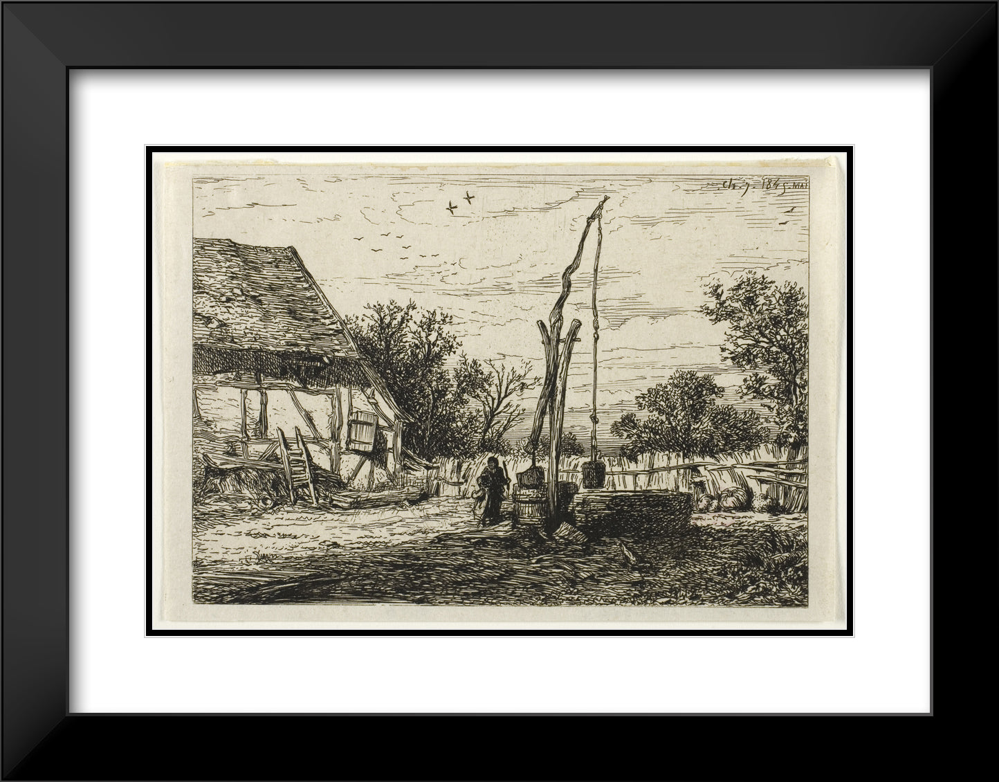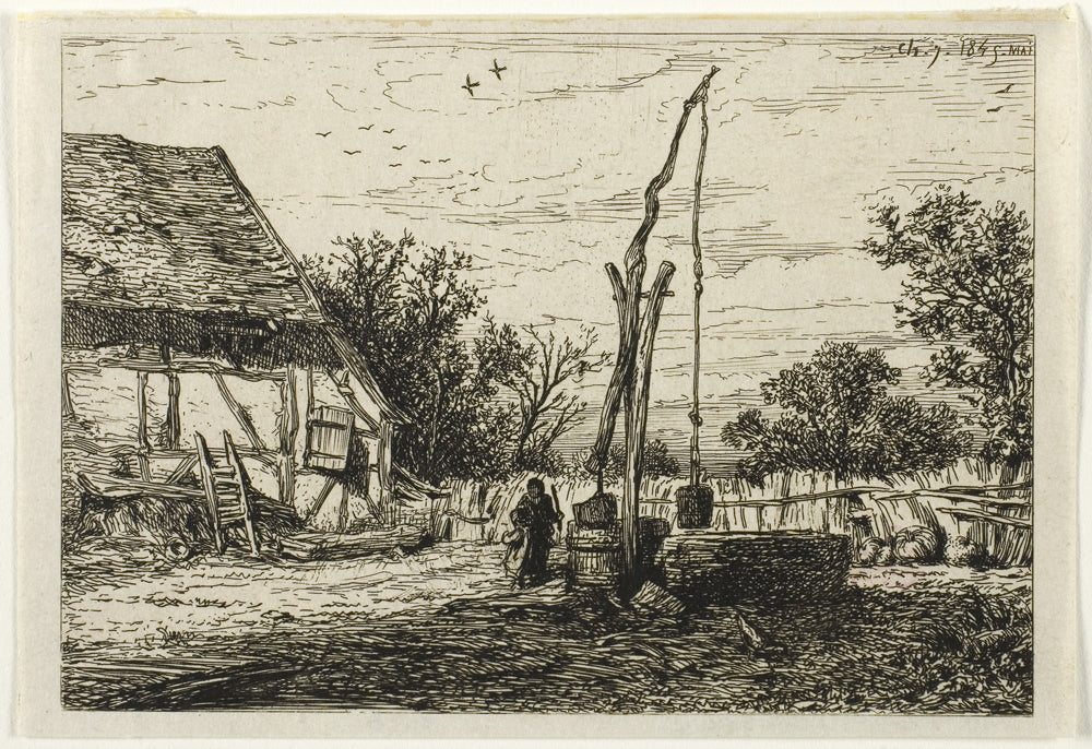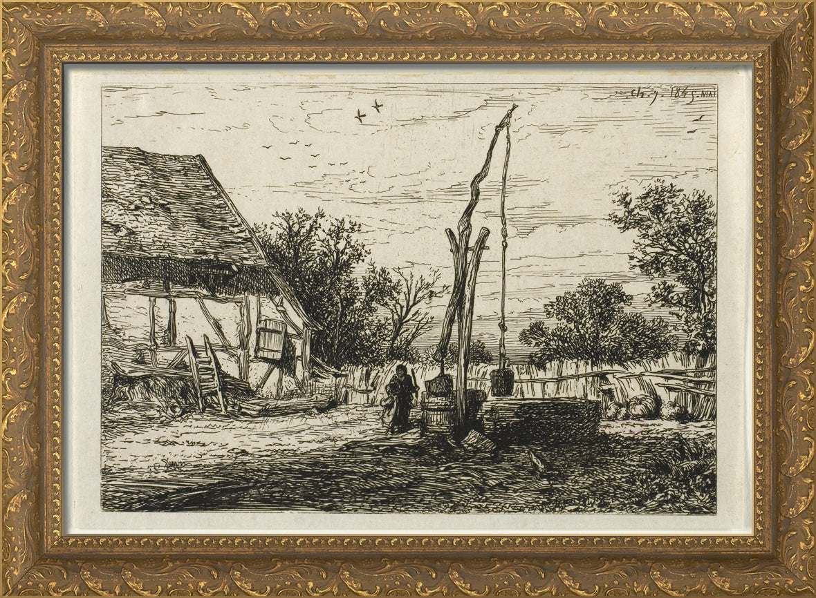 • Well in a Farm Courtyard by Charles Emile Jacque