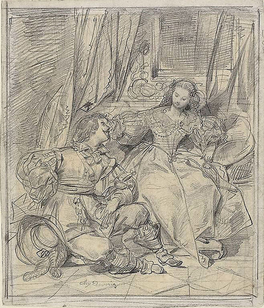 Sketches of Reclining Female Nude and Amorous Couple by William Etty