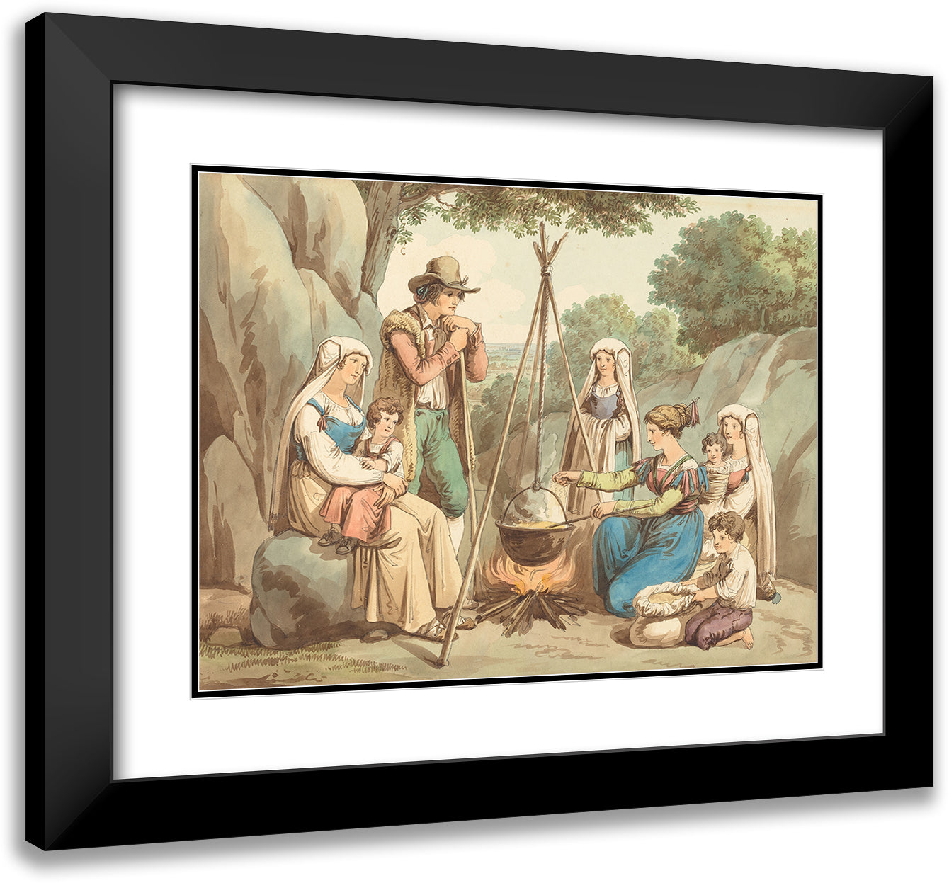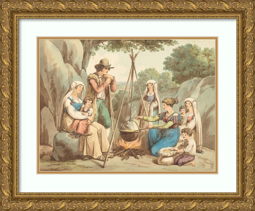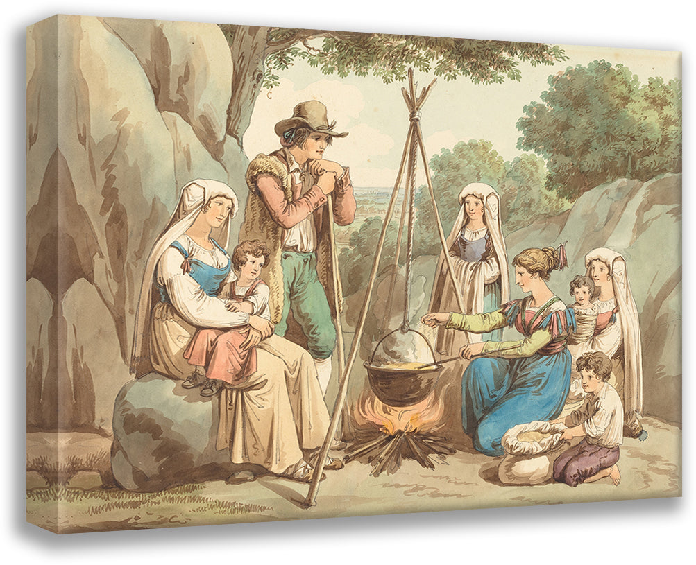 A Peasant Family Cooking Over a Campfire