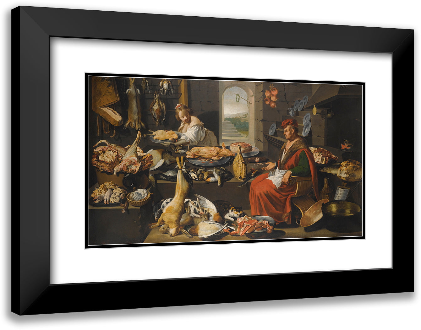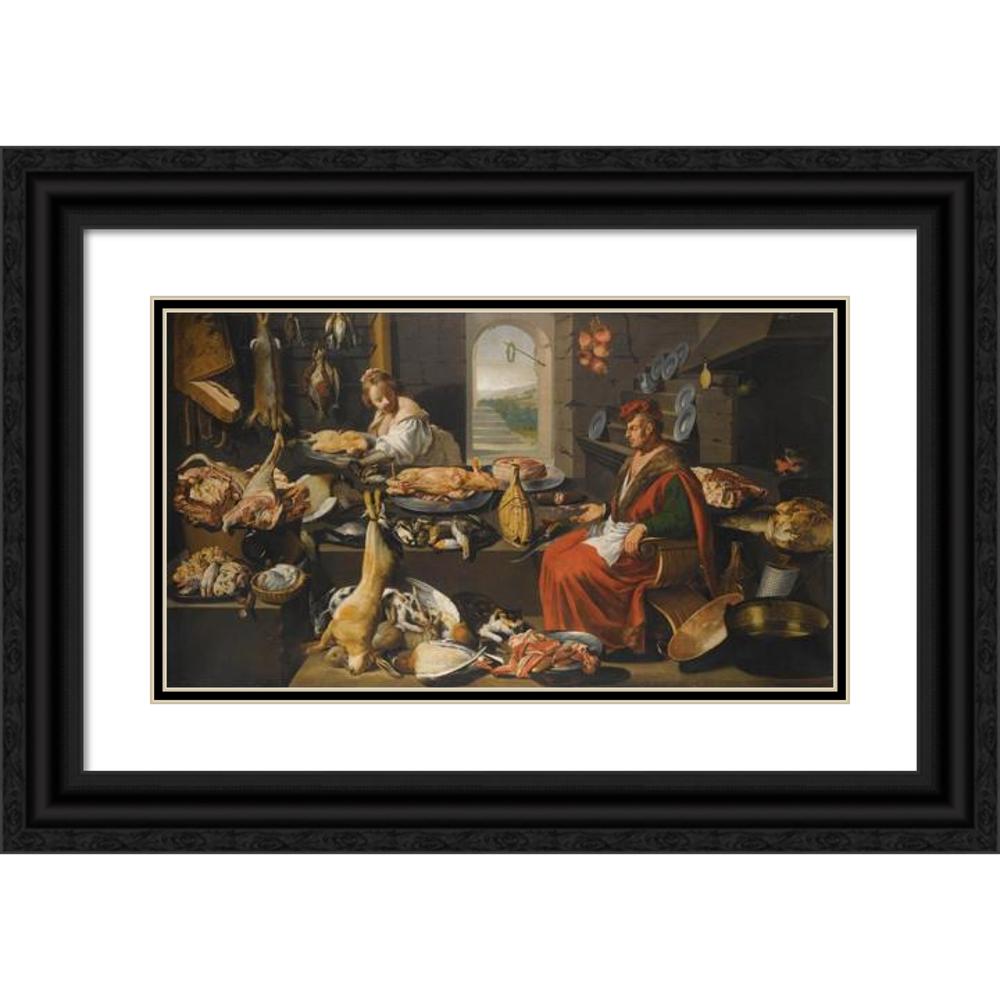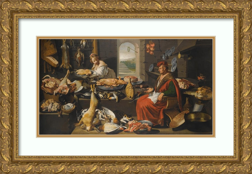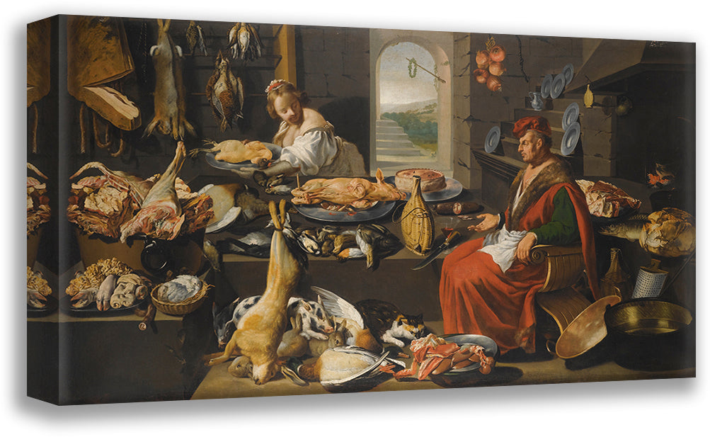/ A Kitchen Interior with a Chef and His Assistant Surrounded by Meats and Cooking Instruments, a Fireplace to the Right (17th Century)