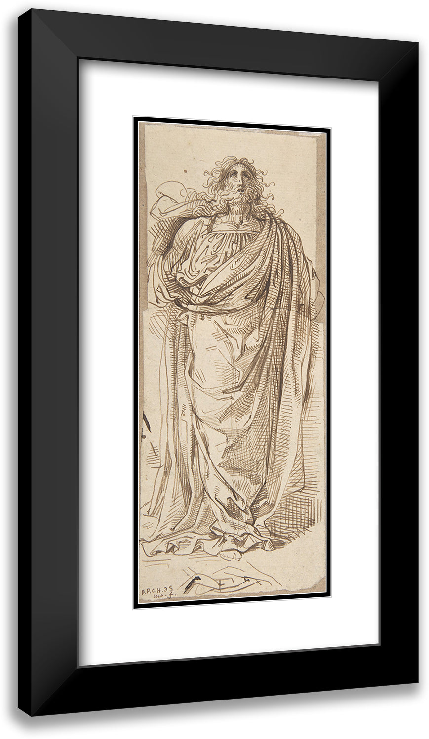 A Draped Bearded Man Looking Up