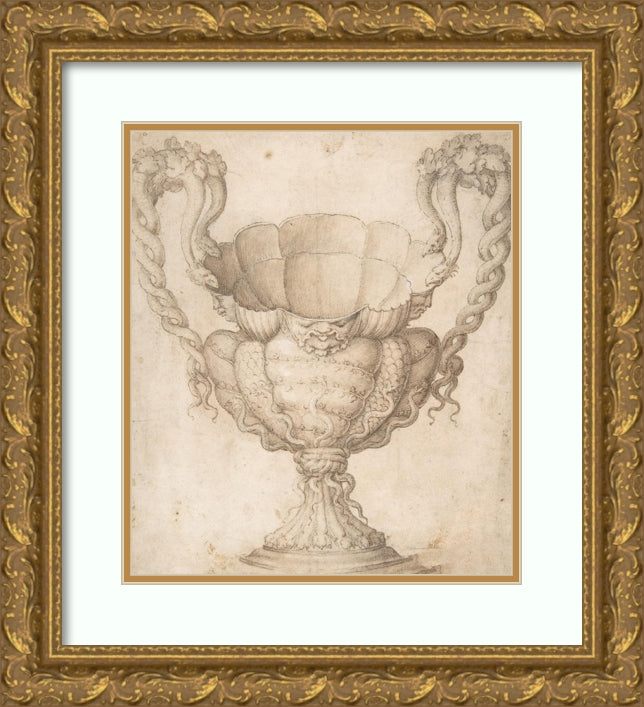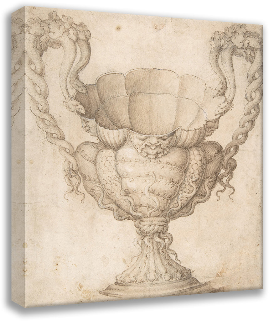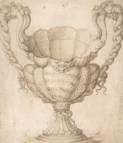 / Design for a Decorated Drinking Cup with Floriated Heads Around Large Mouth, Intertwined Serpents as Handles