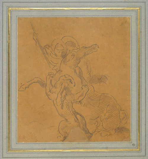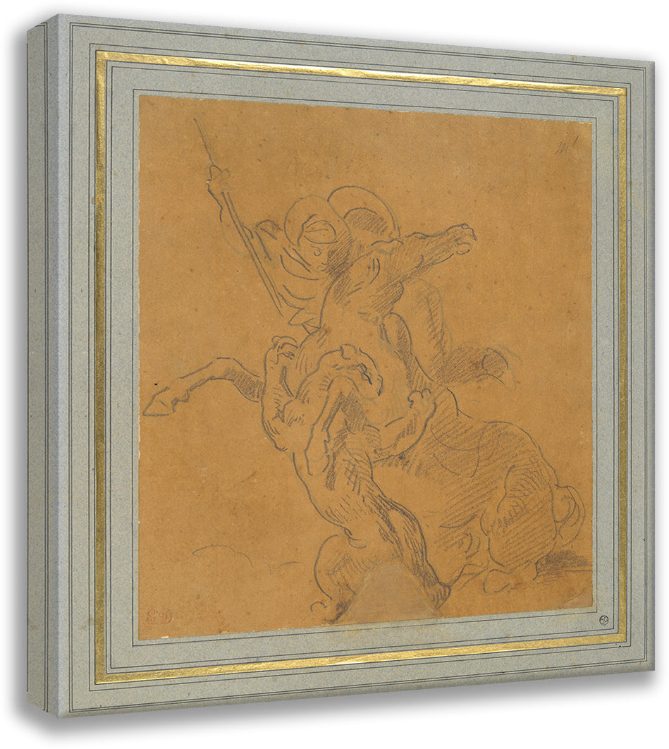 / Lion Attacking a Horse with Rider (Sketch for the Tiger Hunt) (ca. 1854)