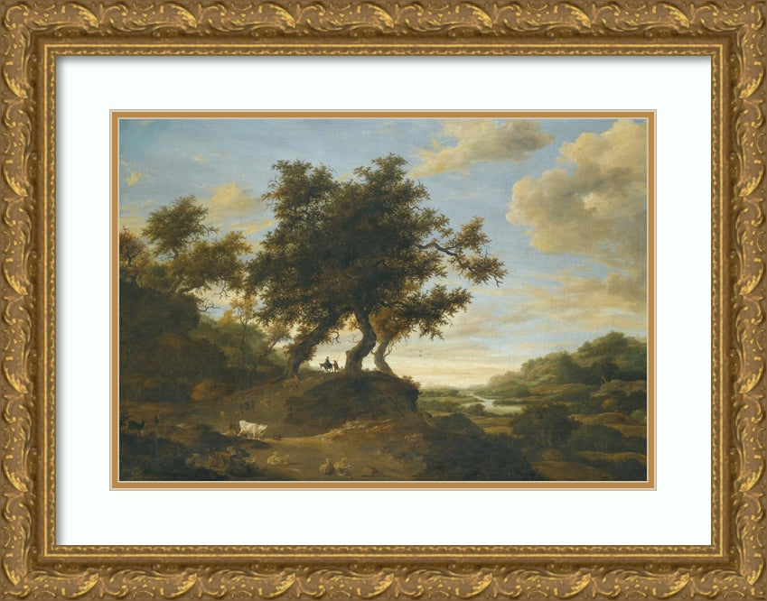 / Herders on Lightly Wooded Raised Ground Overlooking an Expansive River Landscape