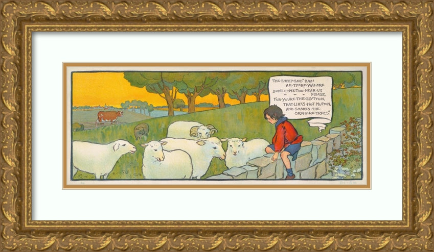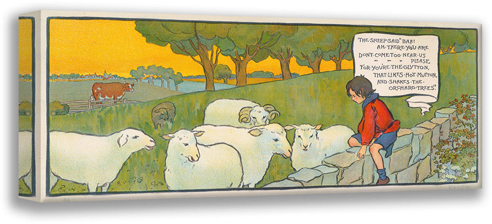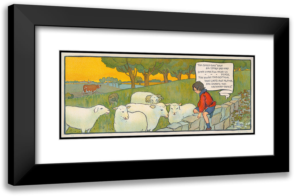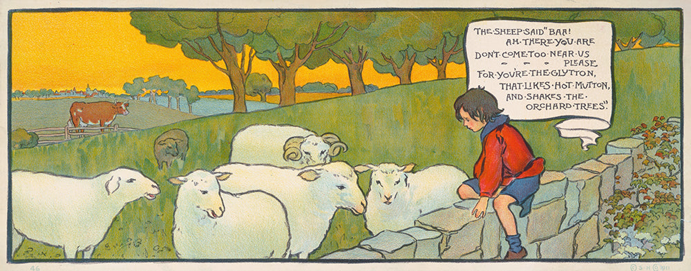 Boy Sitting on a Stone Wall Looking at Sheep (1911)