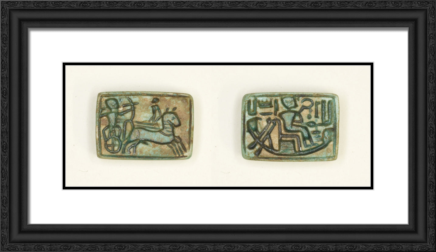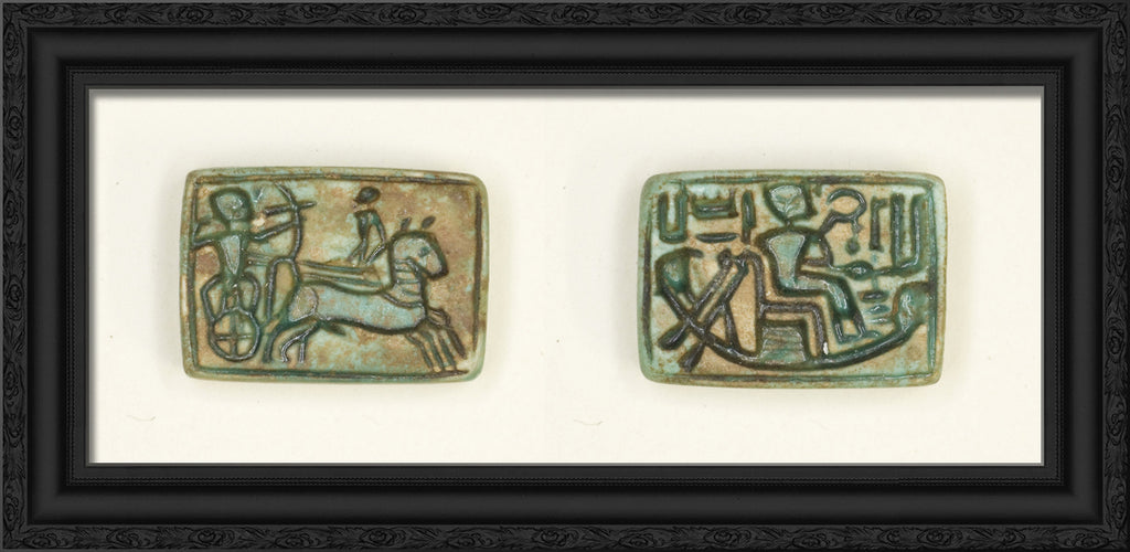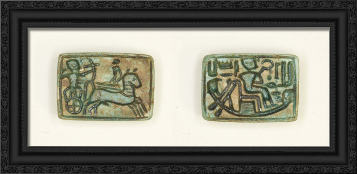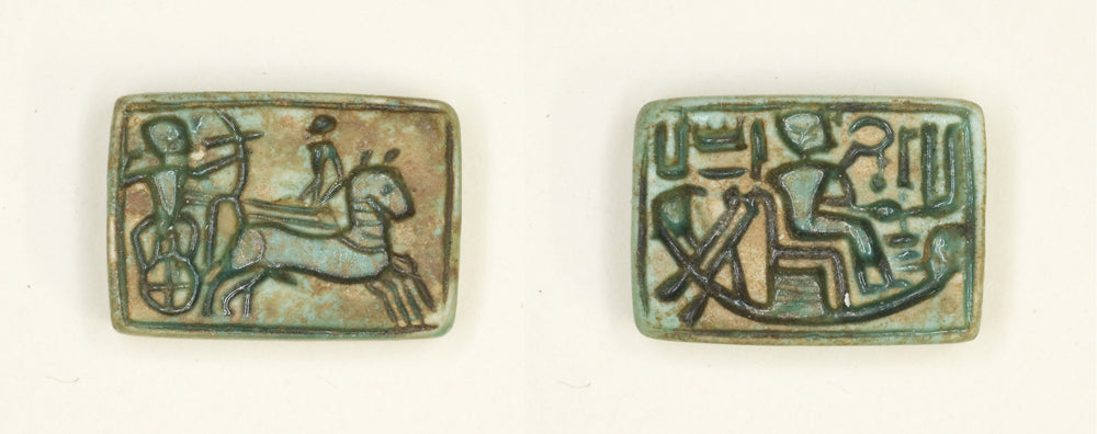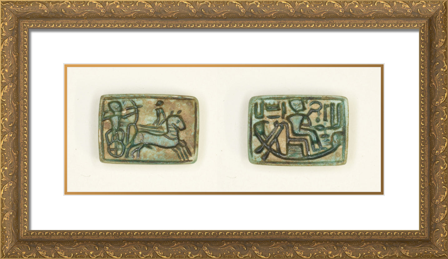 / Plaque: King in Chariot Shoots Enemy/King Seated in the Barque of Amun by Ancient Egyptian