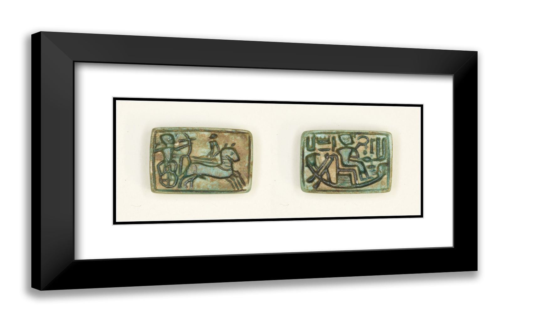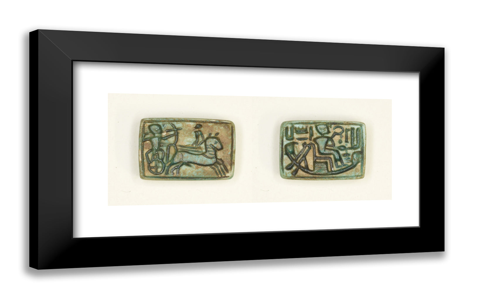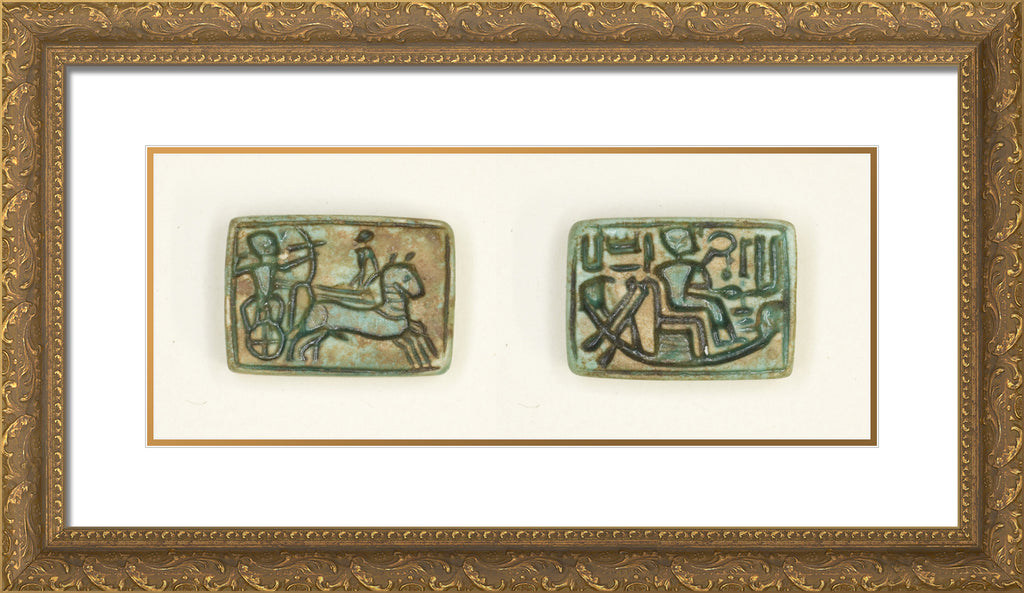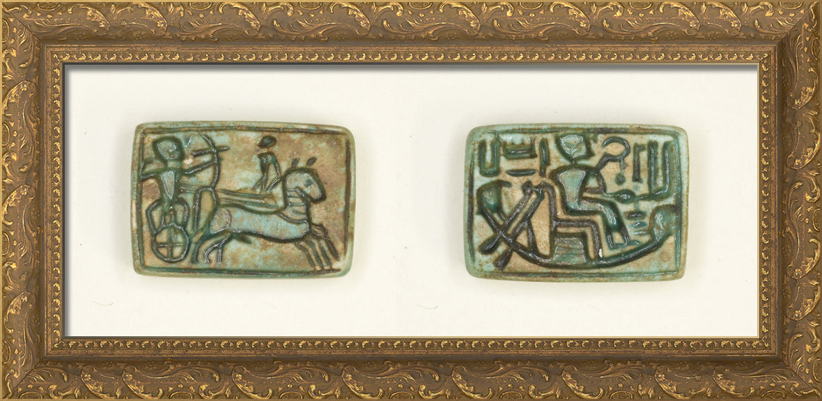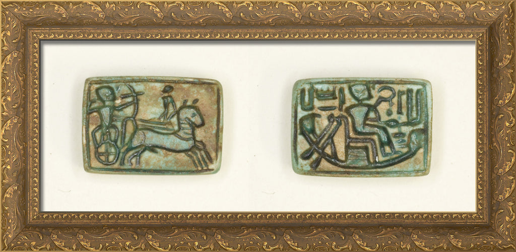 / Plaque: King in Chariot Shoots Enemy/King Seated in the Barque of Amun by Ancient Egyptian