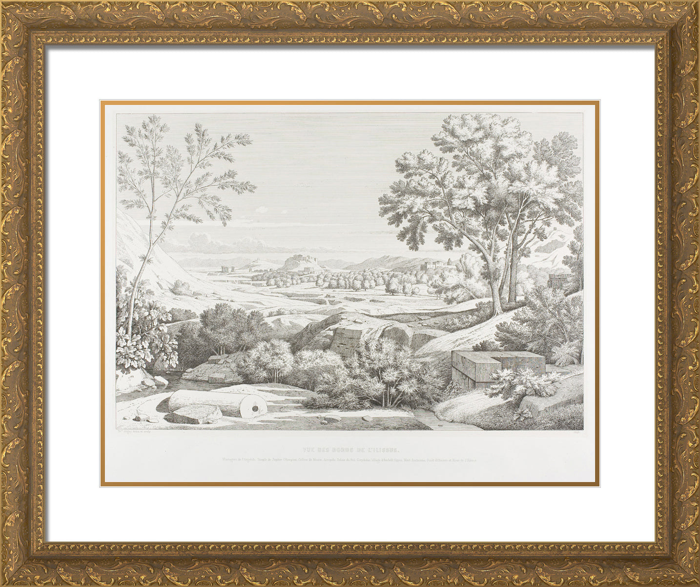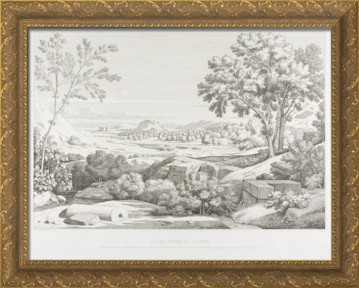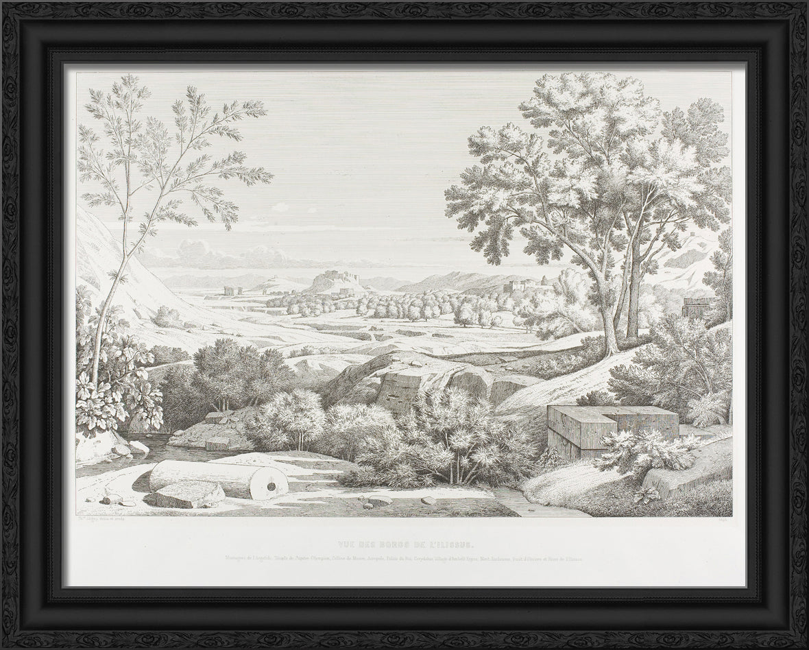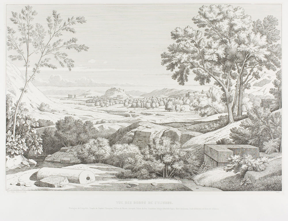 / View from the Banks of the Illisos: Mountains of the Argolid, Temple of Olympic Jupiter, the Acropolis, Palace of King Corydalus, Village of Ambelo'kypos, Mount Anchesmos, Forest of Olives and the River Illisos by Theodore Caruelle d' Aligny