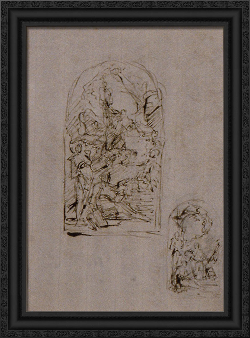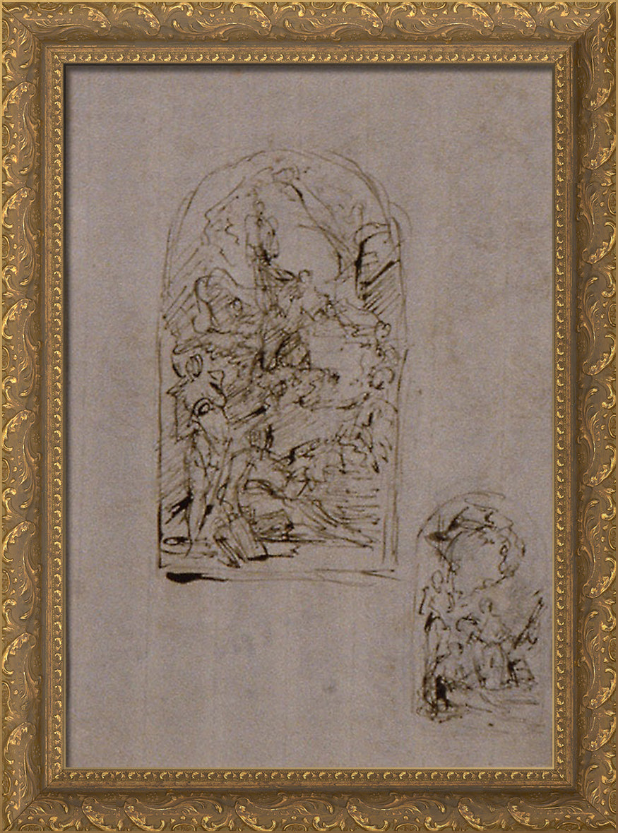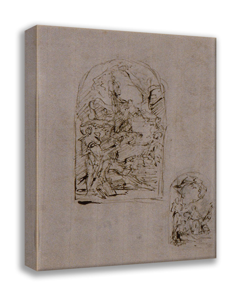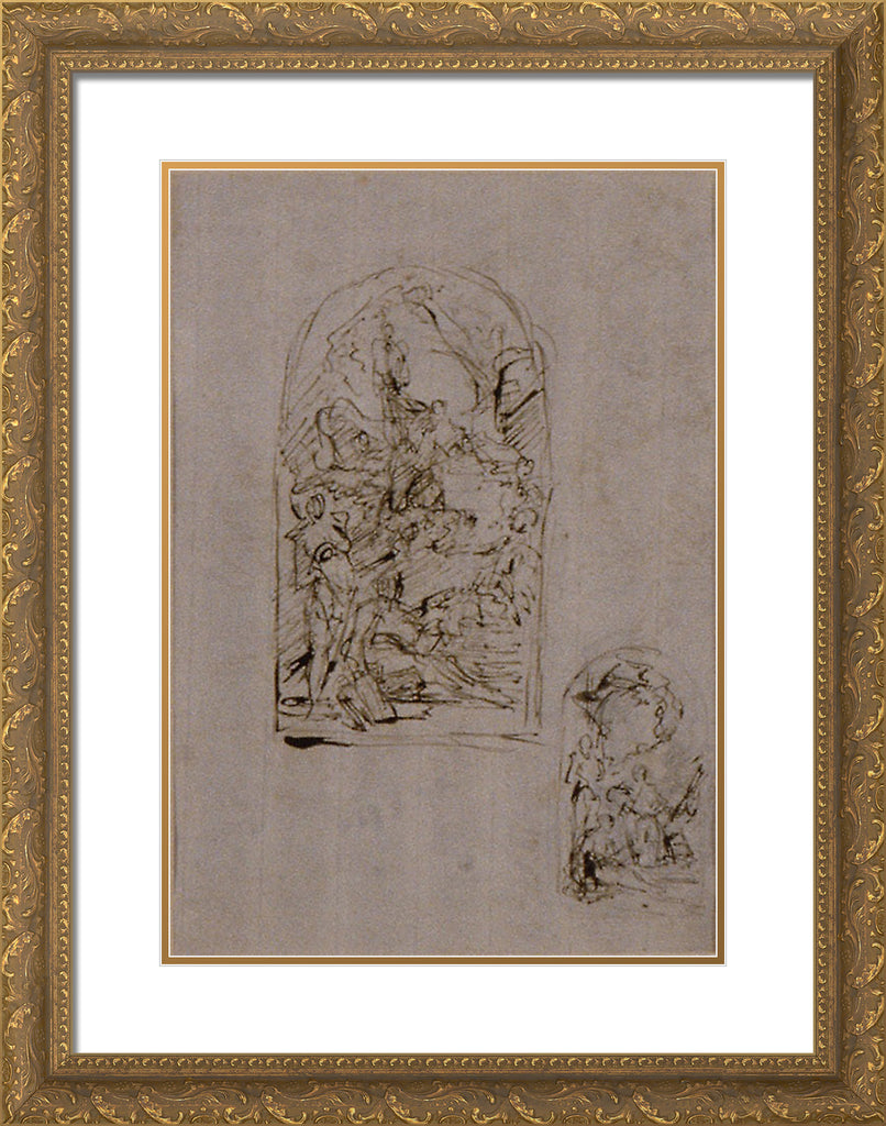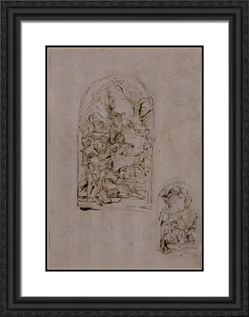• Sketches for an Altar with Saint Margaret of Cortona, Saint Sebastian and Saint Roch (recto); Two Sketches for an Altar (verso) by Giovanni Battista Piazzetta