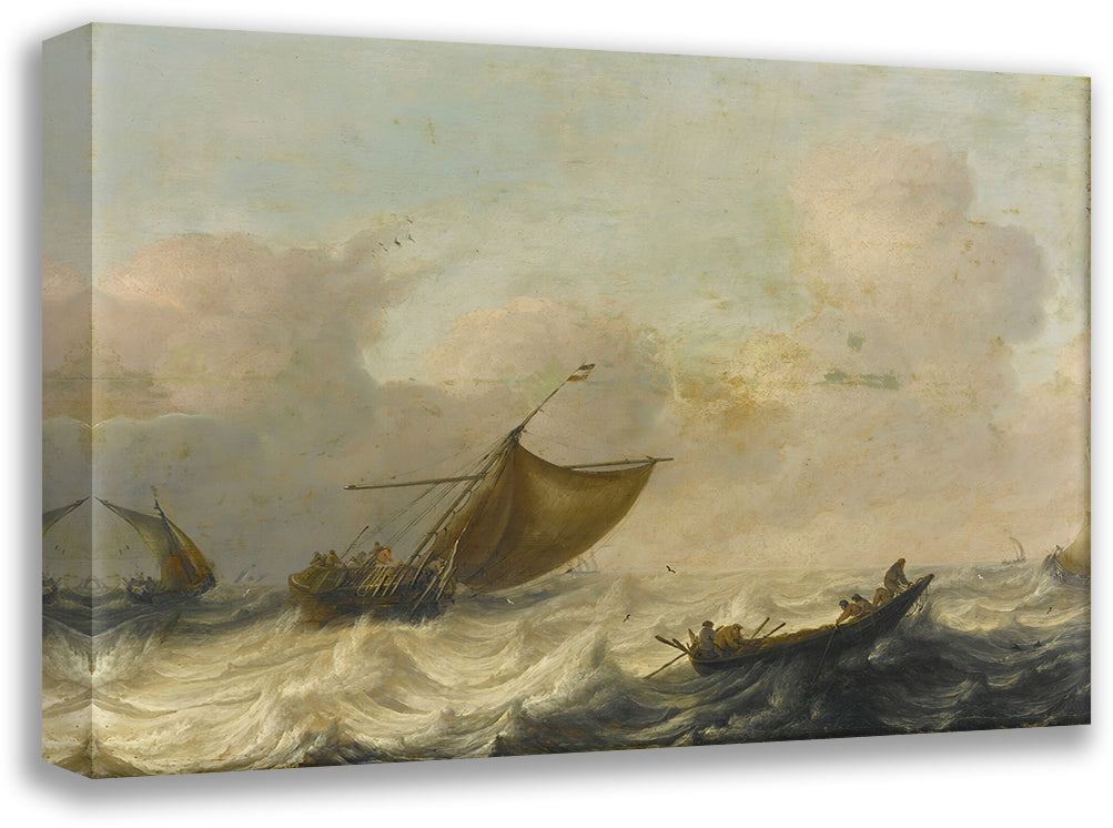 Fishing and Rowing Boats Among Choppy Waters