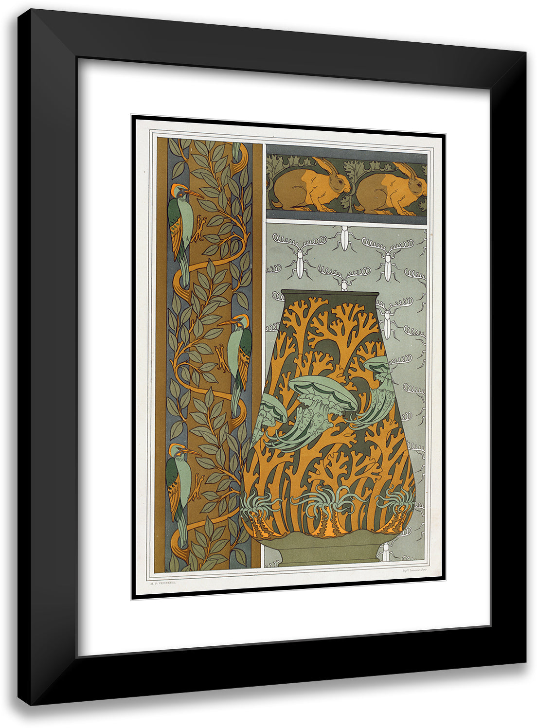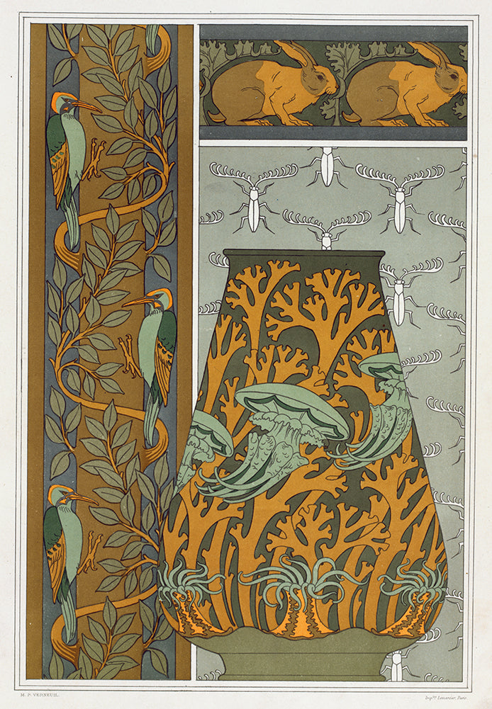 / Pivets and Tree, Vertical Border. Rabbits and Leaves, Border. Jellyfish, Sea Anemones and Seaweed, Vase. Insects, Background Game. (1897)