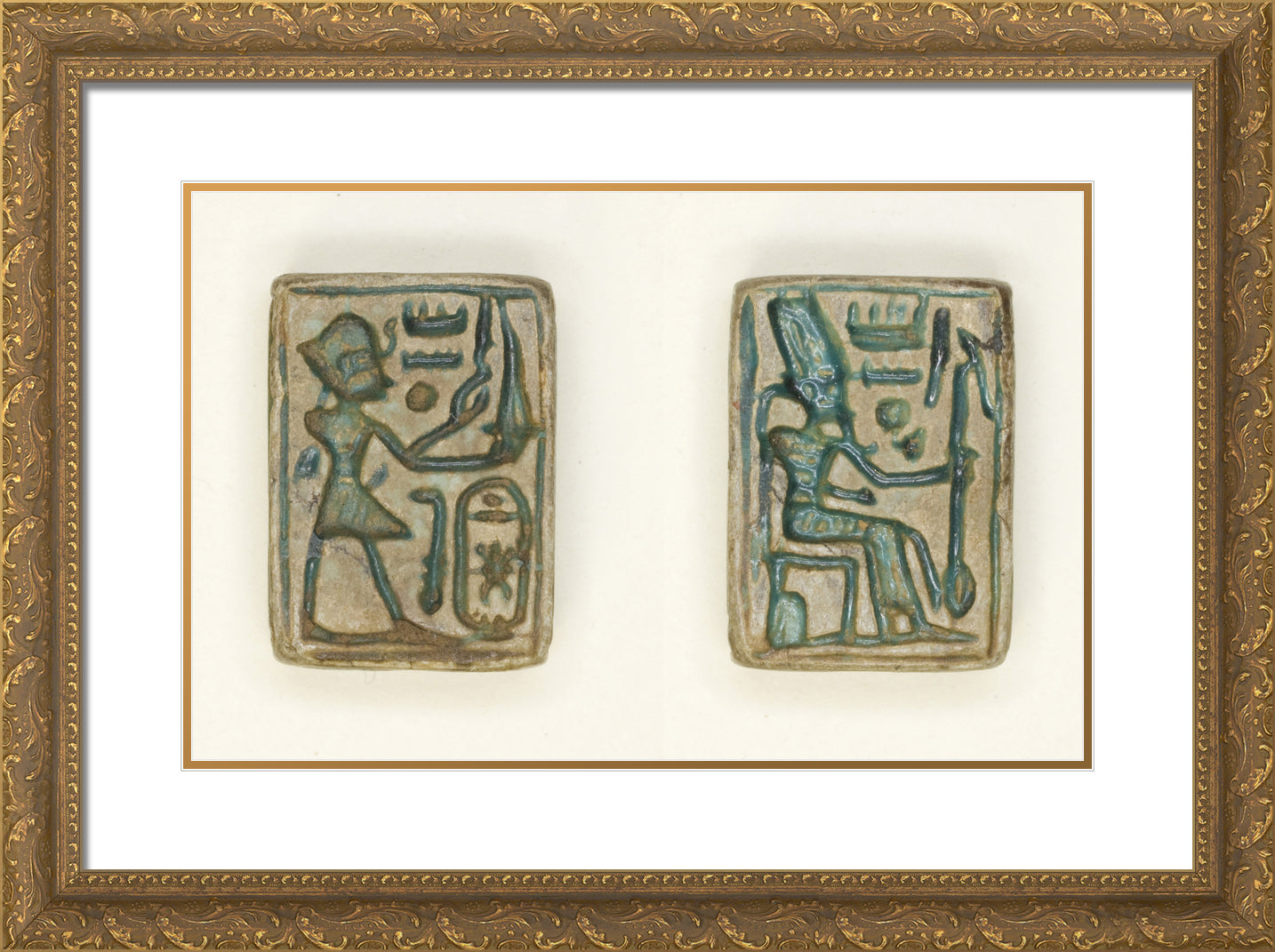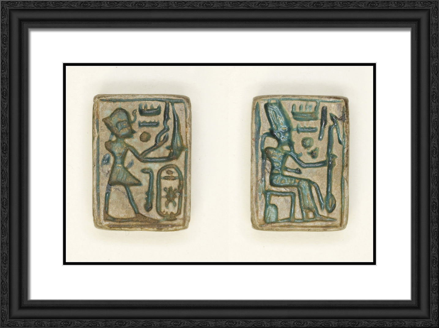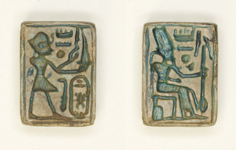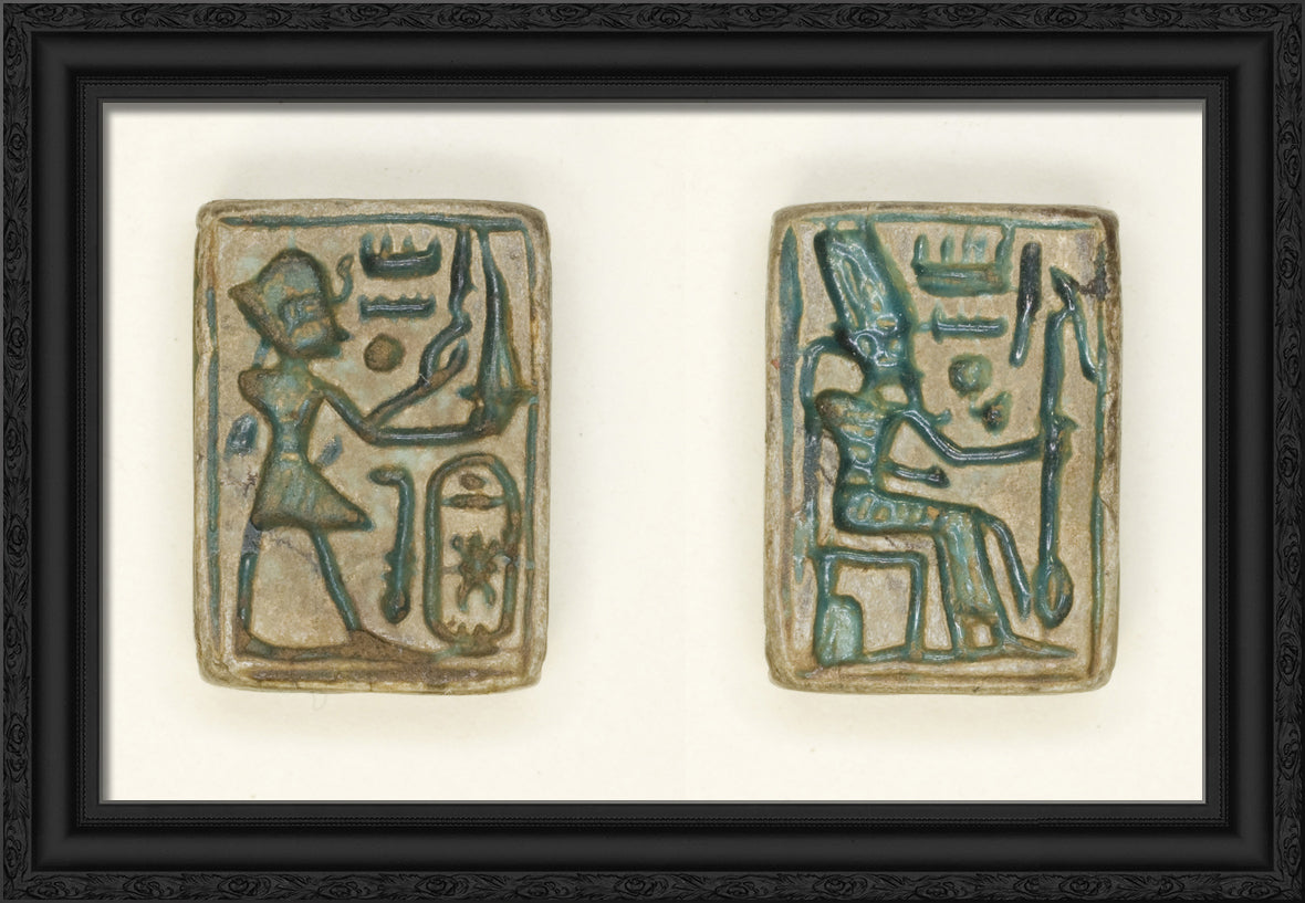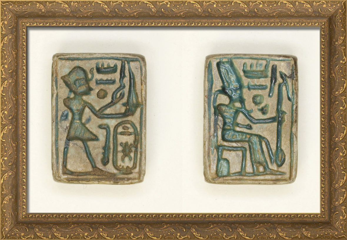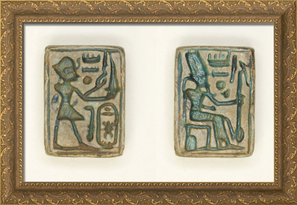 / Plaque: King Aakheprre Offers Incense/Amun Re Seated on Throne by Ancient Egyptian