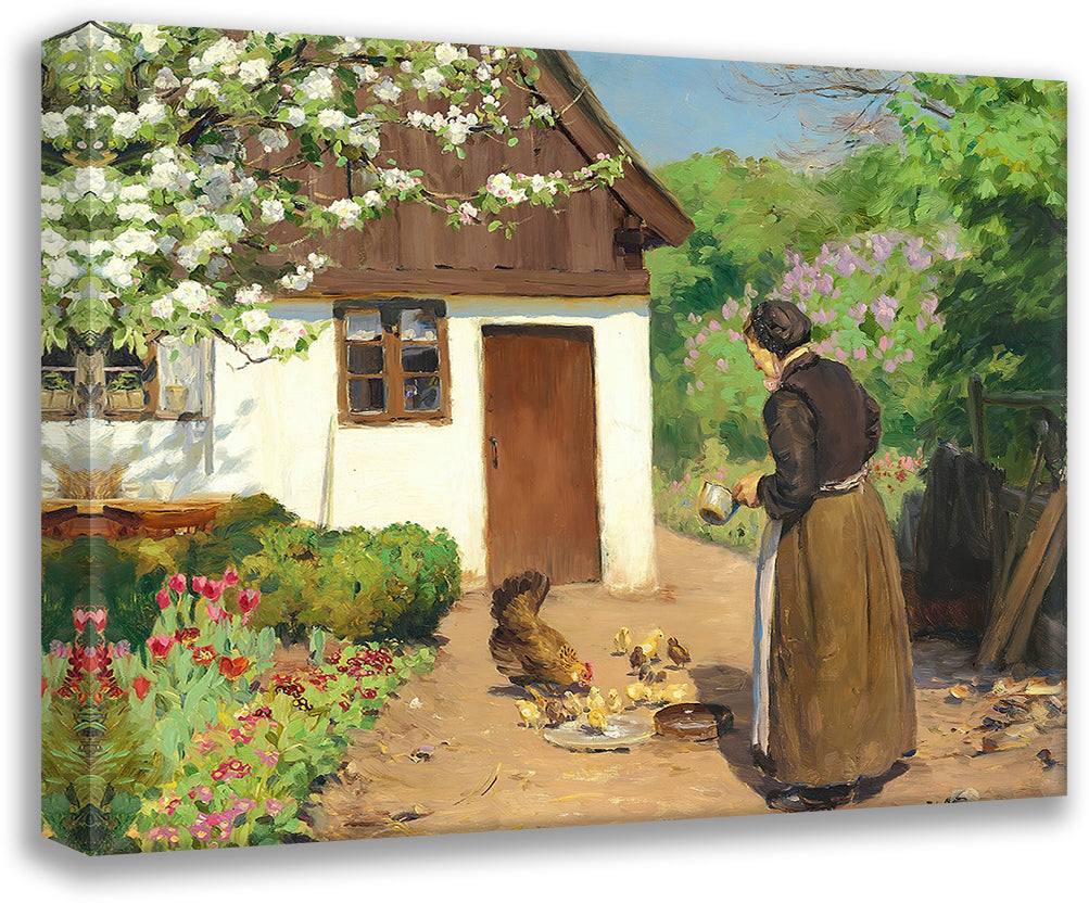 / The Chickens Are Fed in Front of the Whitewashed Farmhouse One Summer Day