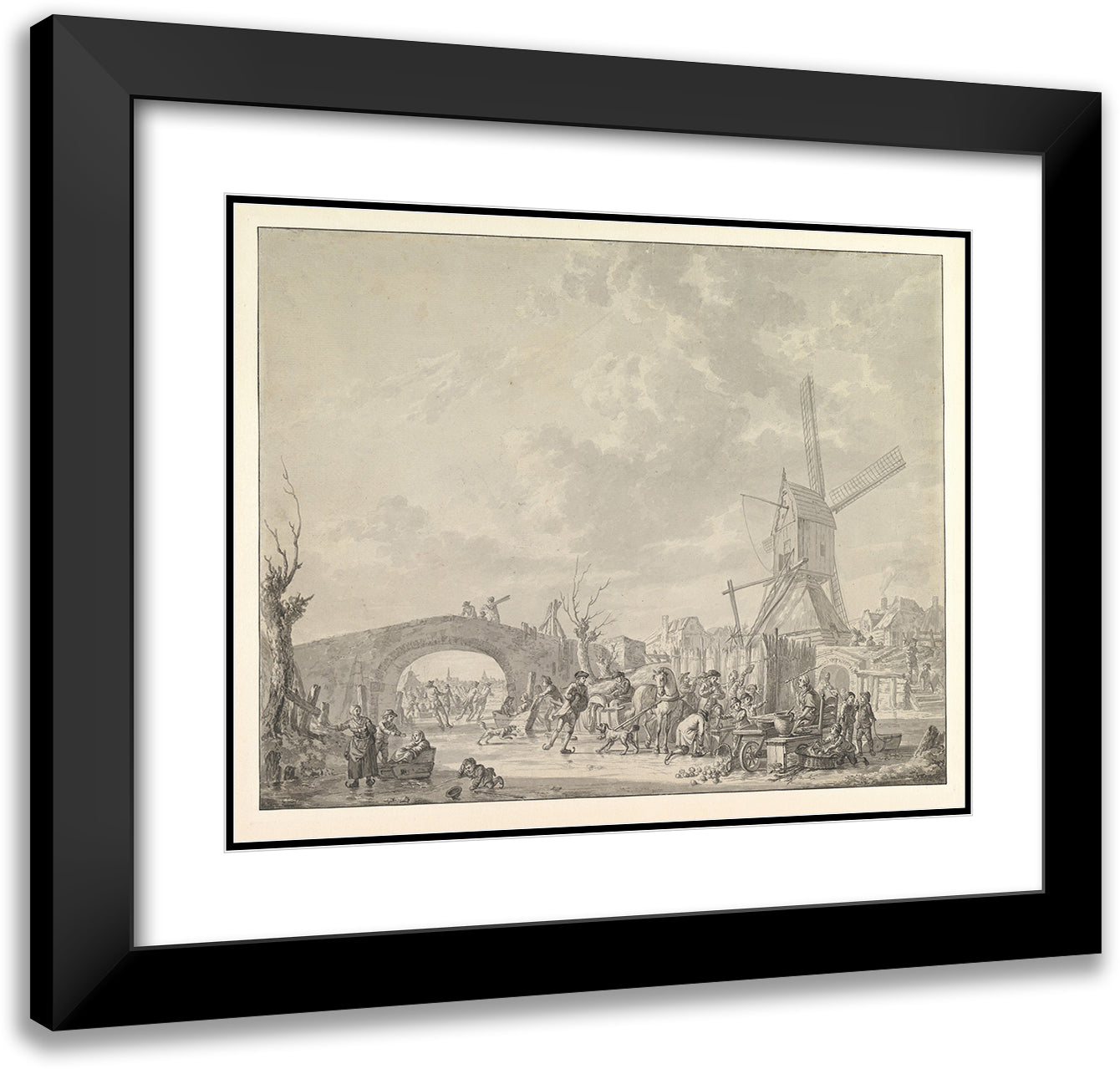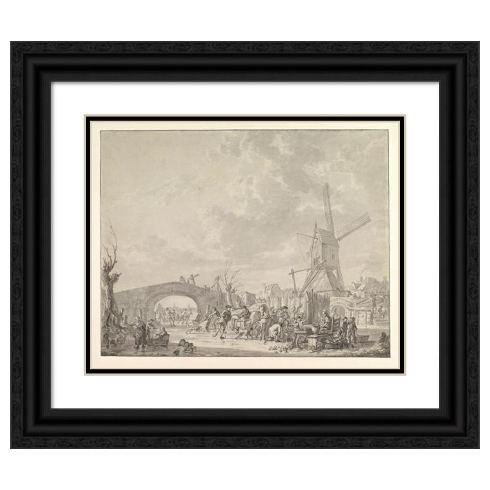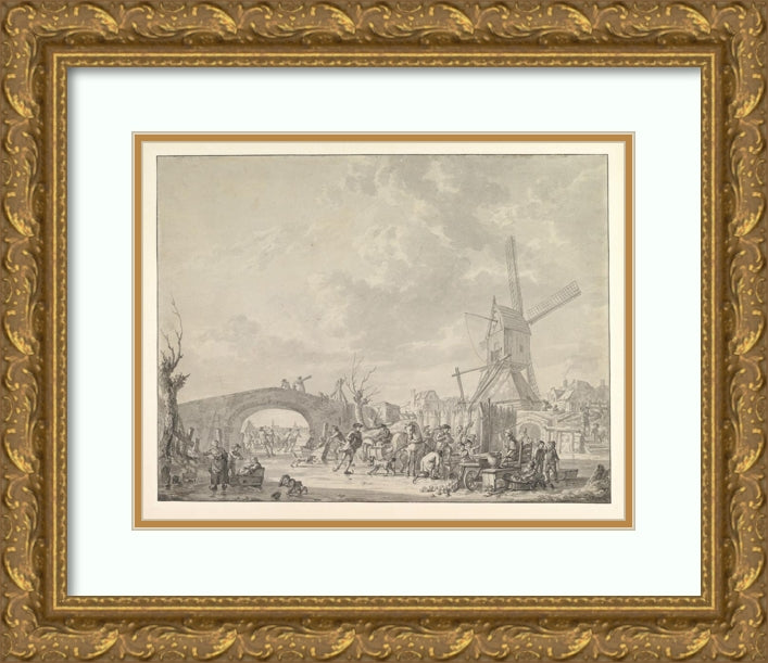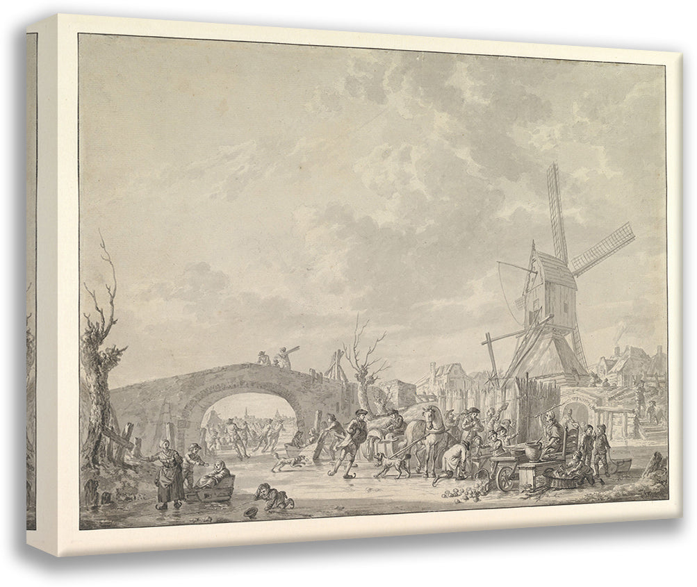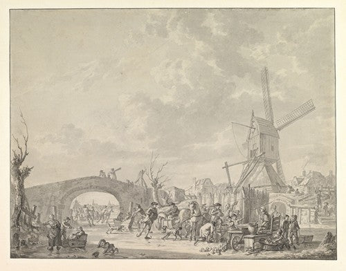 / Winter Landscape with Skaters and Sledges on the Ice, a Bridge and a Mill Behind