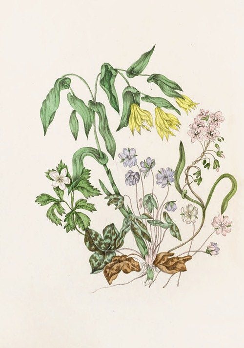 / Sharp Lobed Hepatica, Large Flowered Bellwort, Wood Anemon, Spring Beauty (1868)