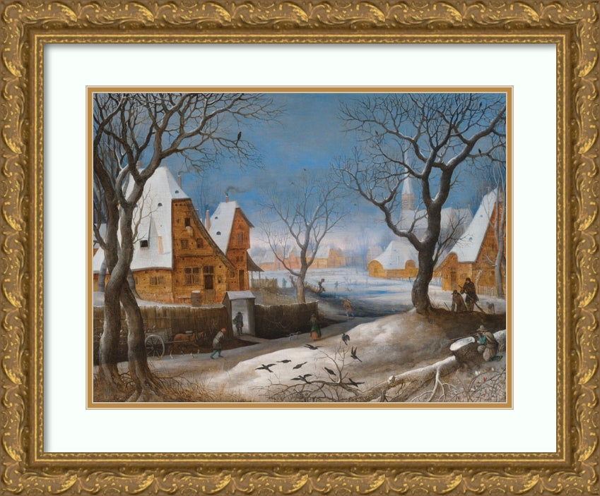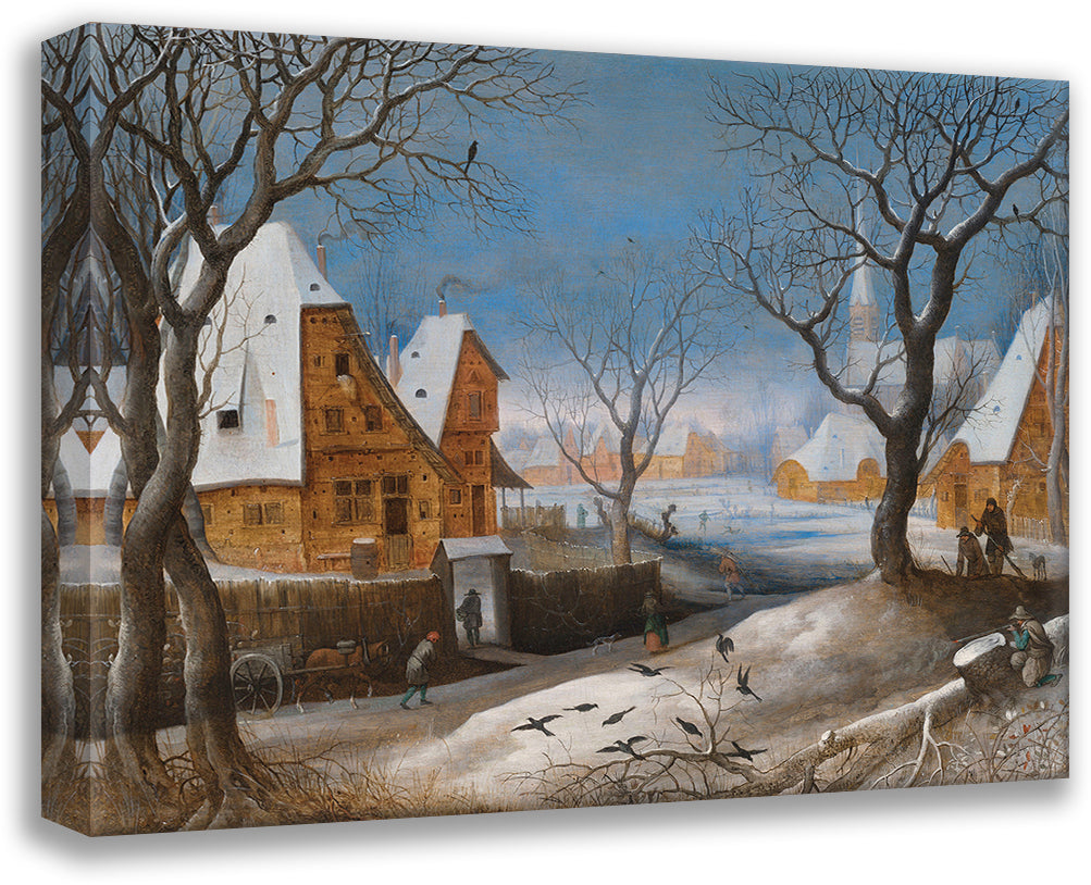A Winter Landscape, with Figures in a Village