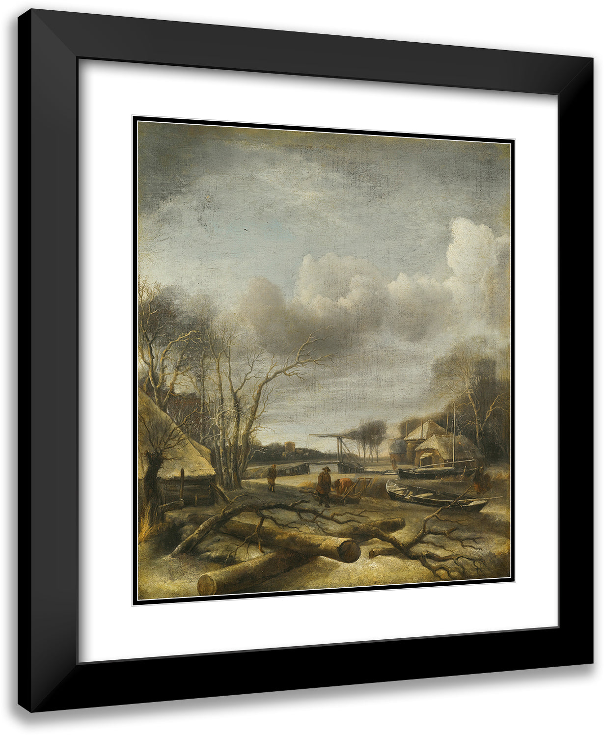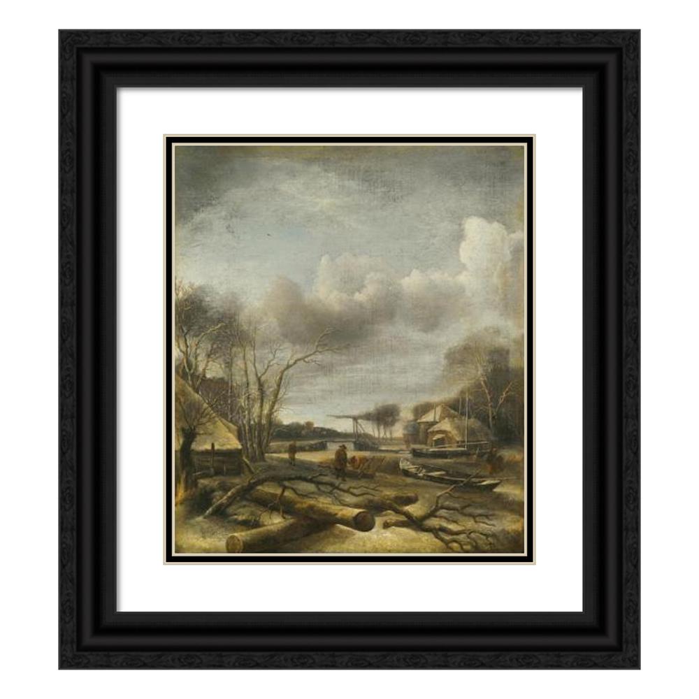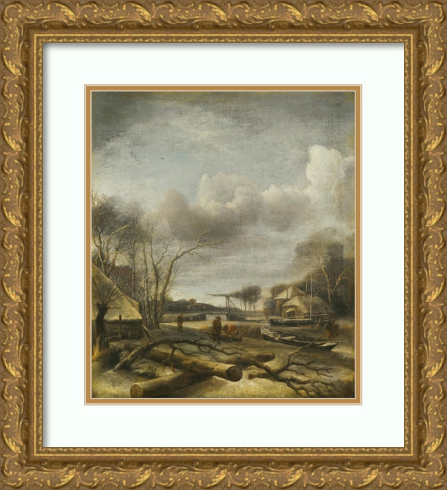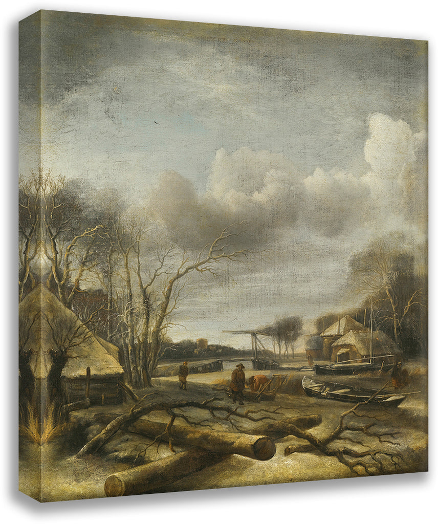 / Winter Landscape With A Man Fixing a Sled at the Edge of a Frozen River