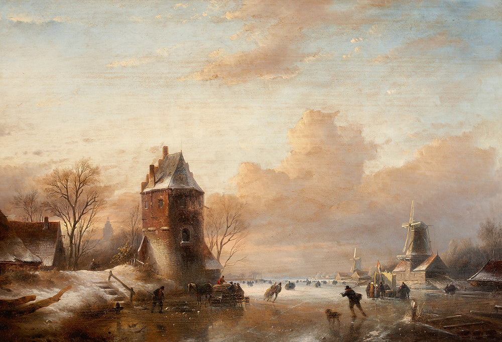 Winter Landscape with Windmills and Skaters