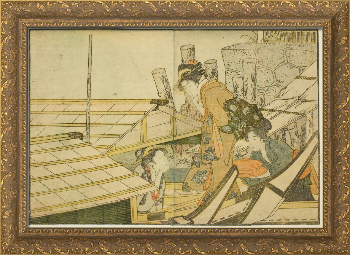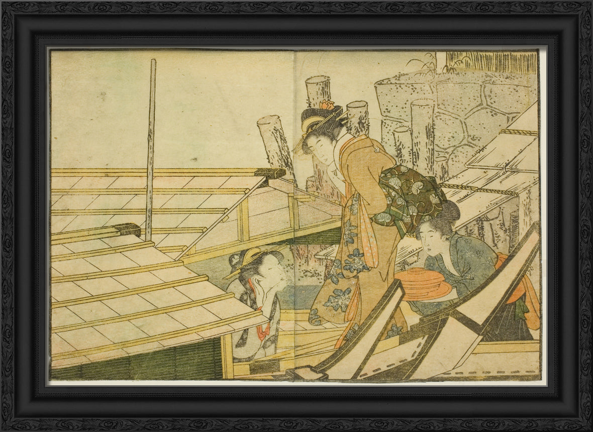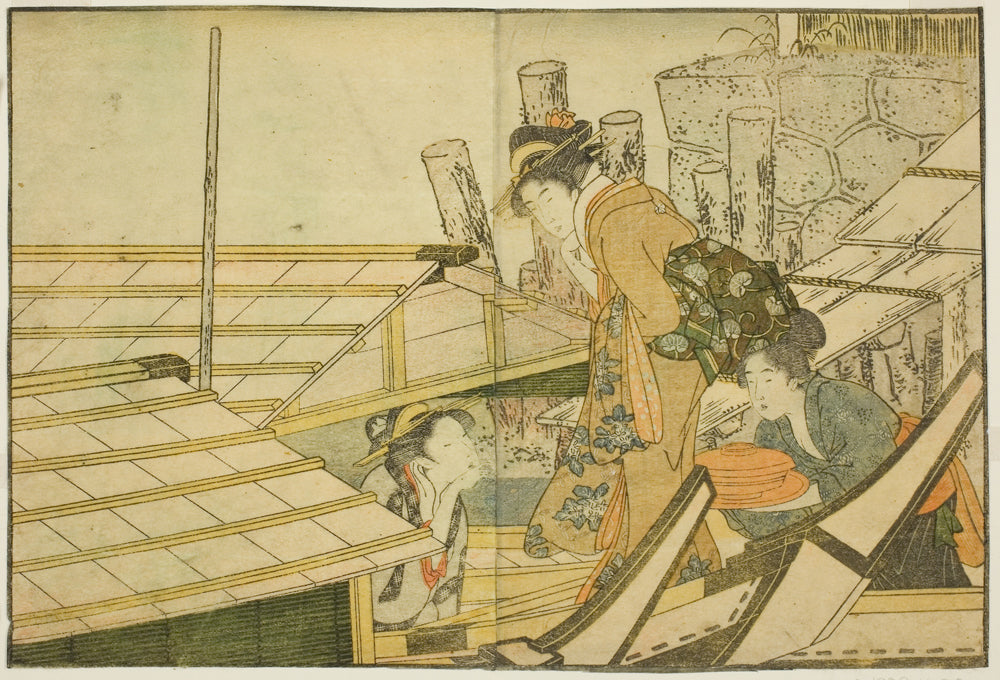 / Embarking on Pleasure Boats in Summer, from the illustrated book "Picture Book: Flowers of the Four Seasons (Ehon shiki no hana)," vol. 1 by Kitagawa Utamaro