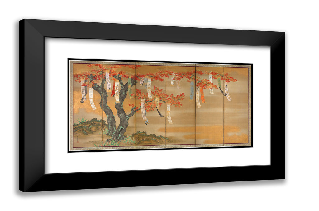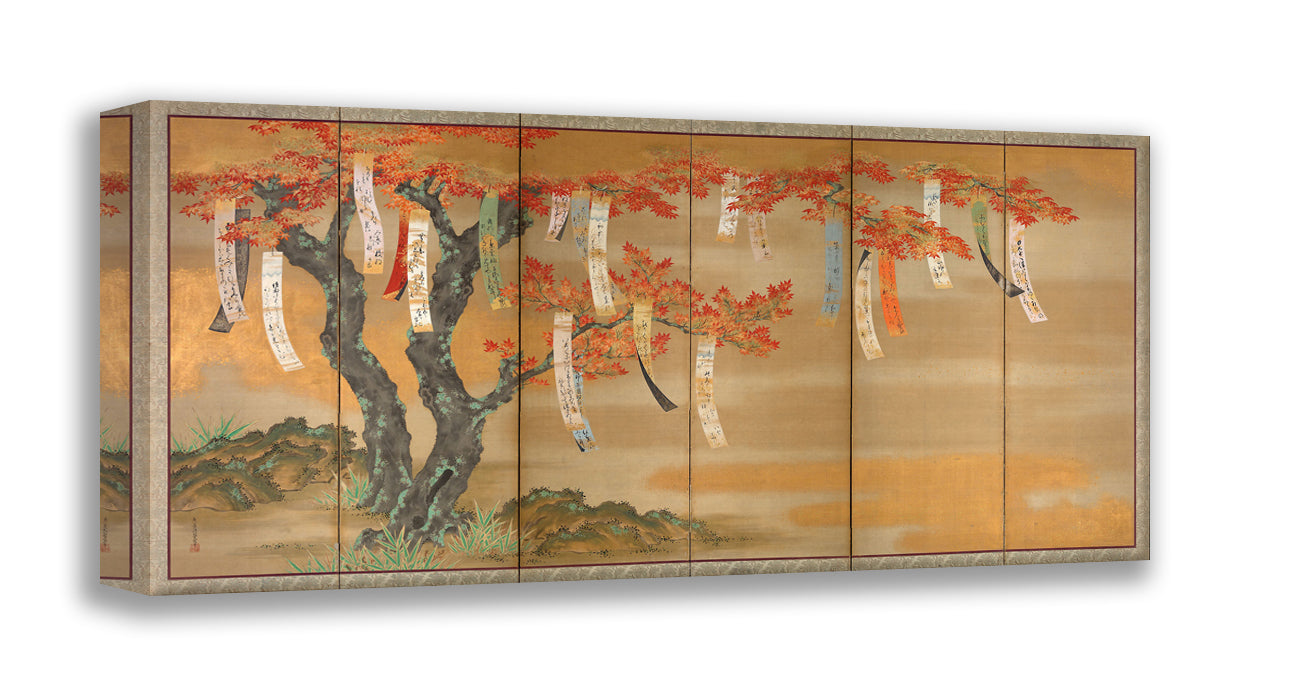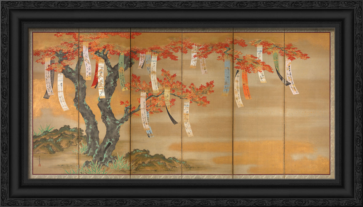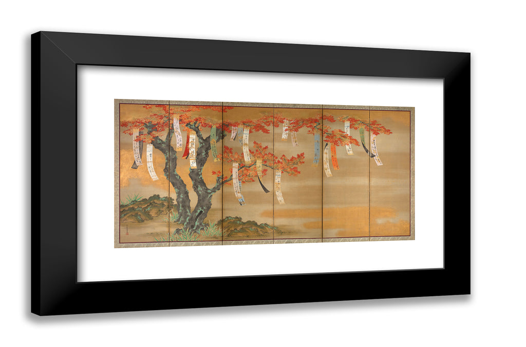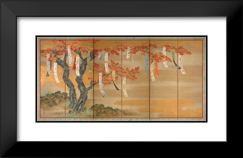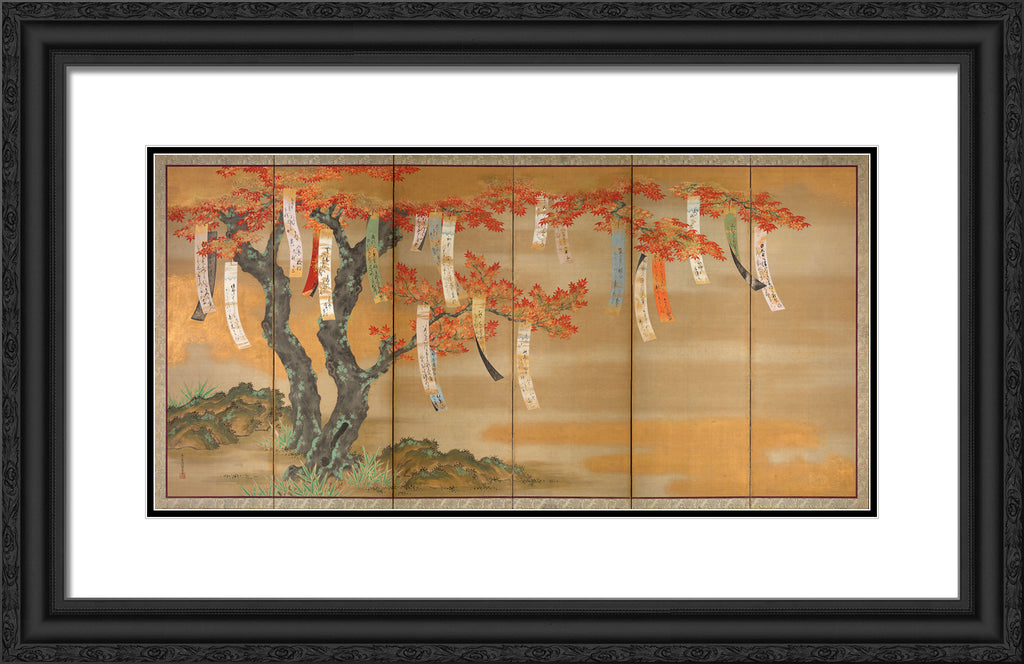 Flowering Cherry and Autumn Maples with Poem Slips by Tosa Mitsuoki