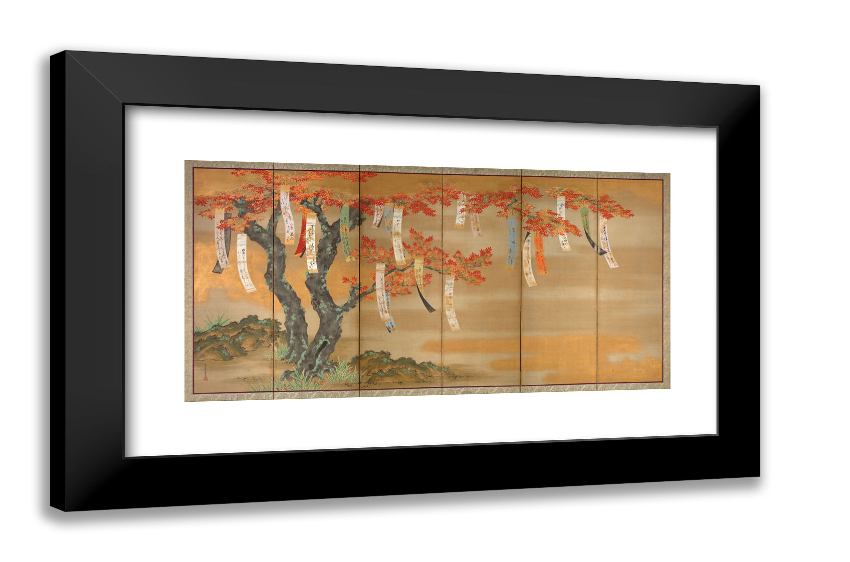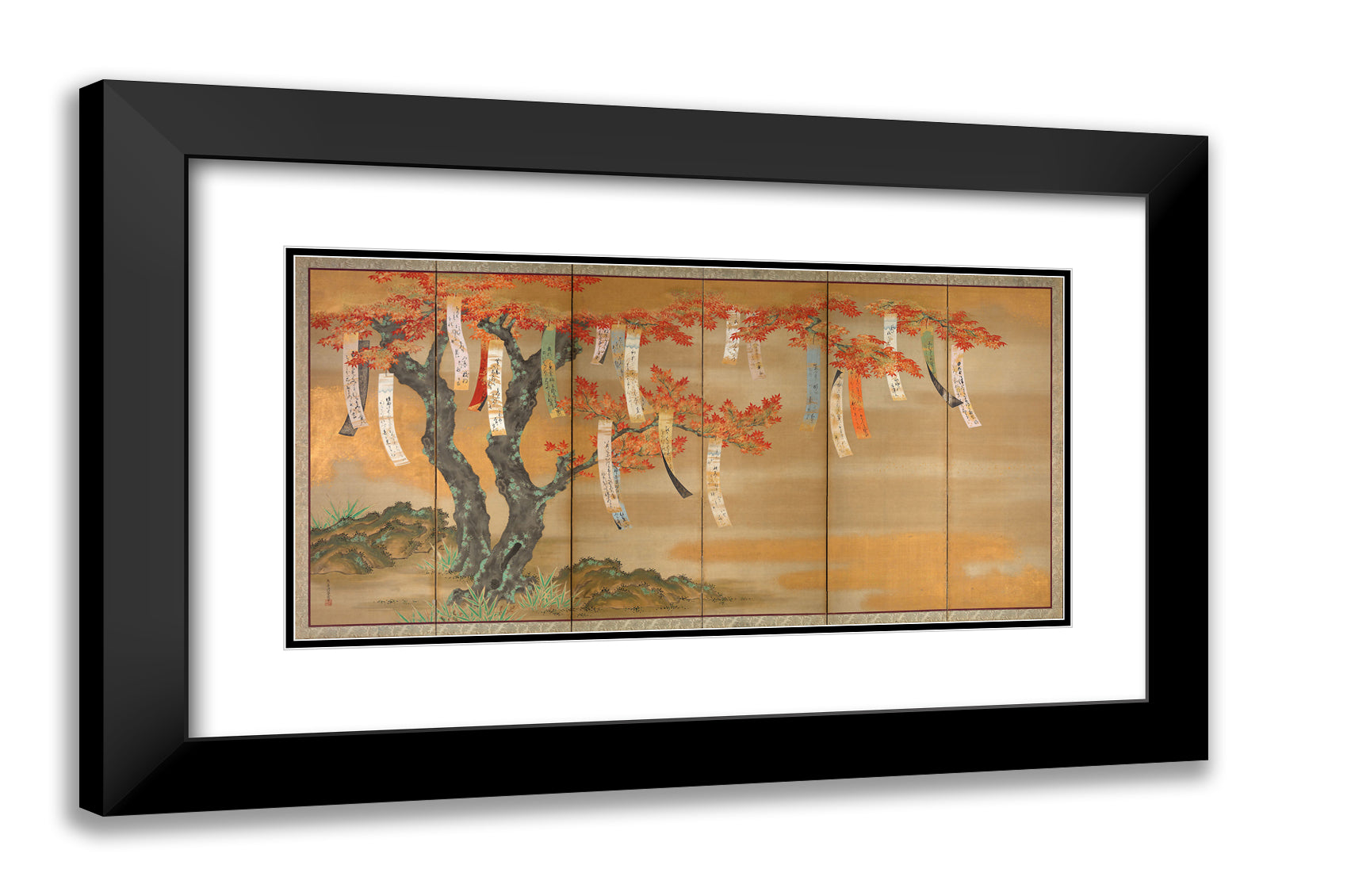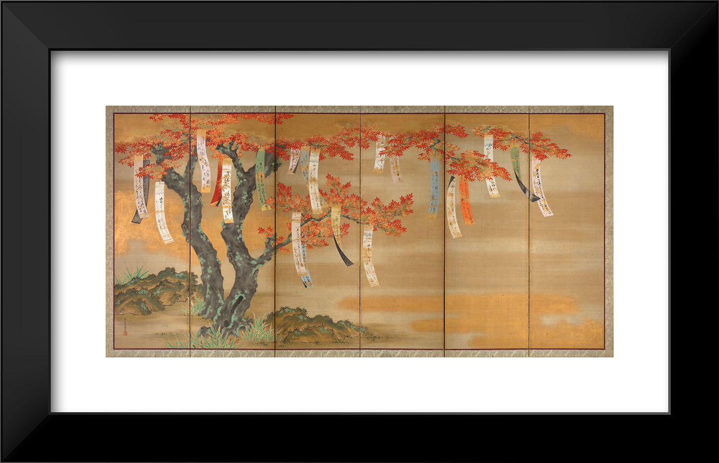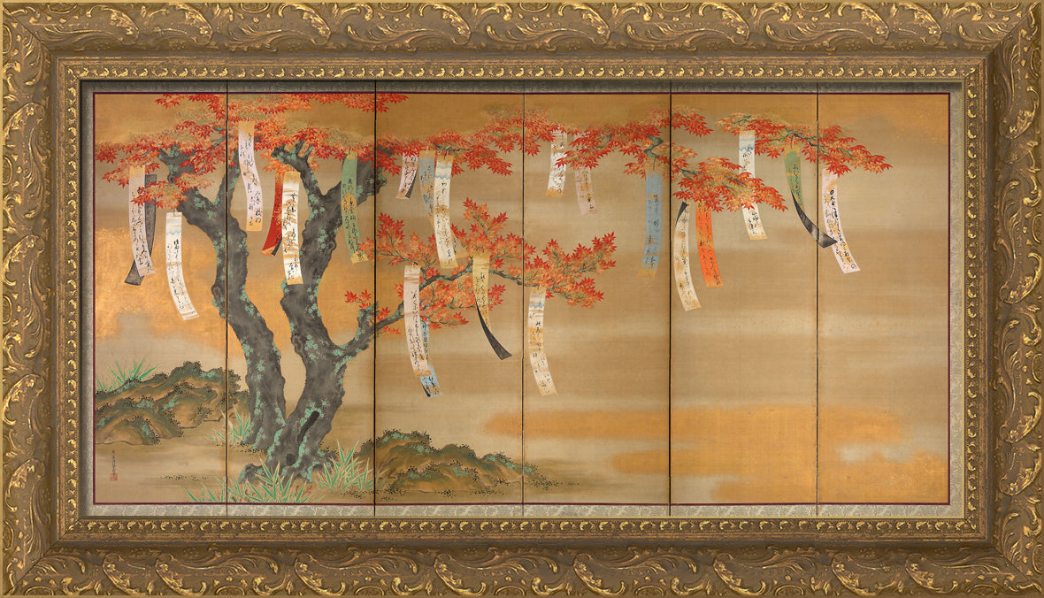 • Flowering Cherry and Autumn Maples with Poem Slips by Tosa Mitsuoki