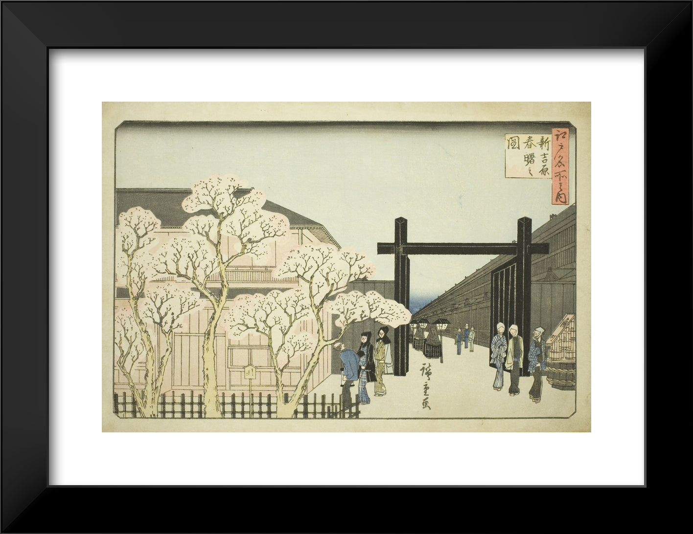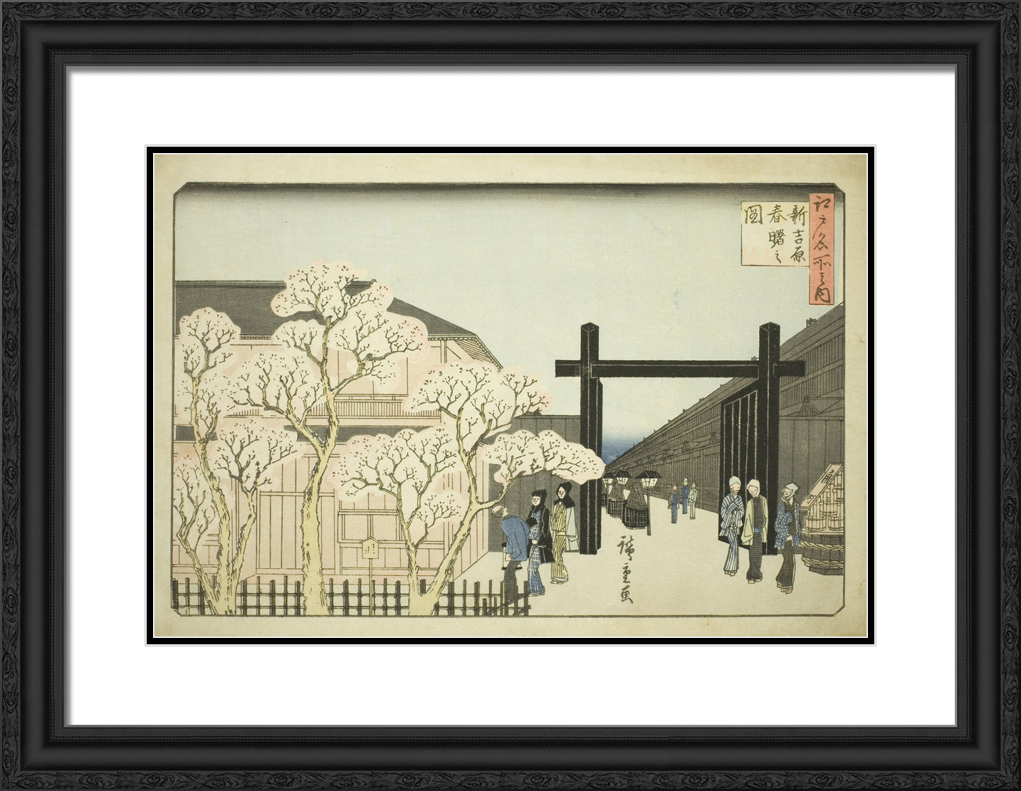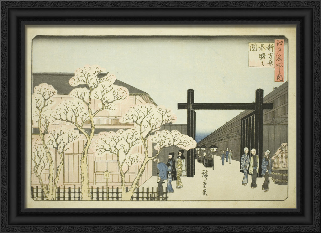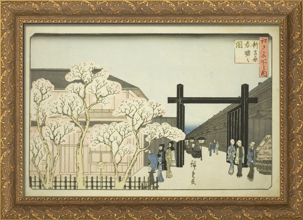 / Spring Dawn in the New Yoshiwara (Shin Yoshiwara haru akebono no zu), from the series "Famous Places in Edo (Edo meisho no uchi)" by Utagawa Hiroshige