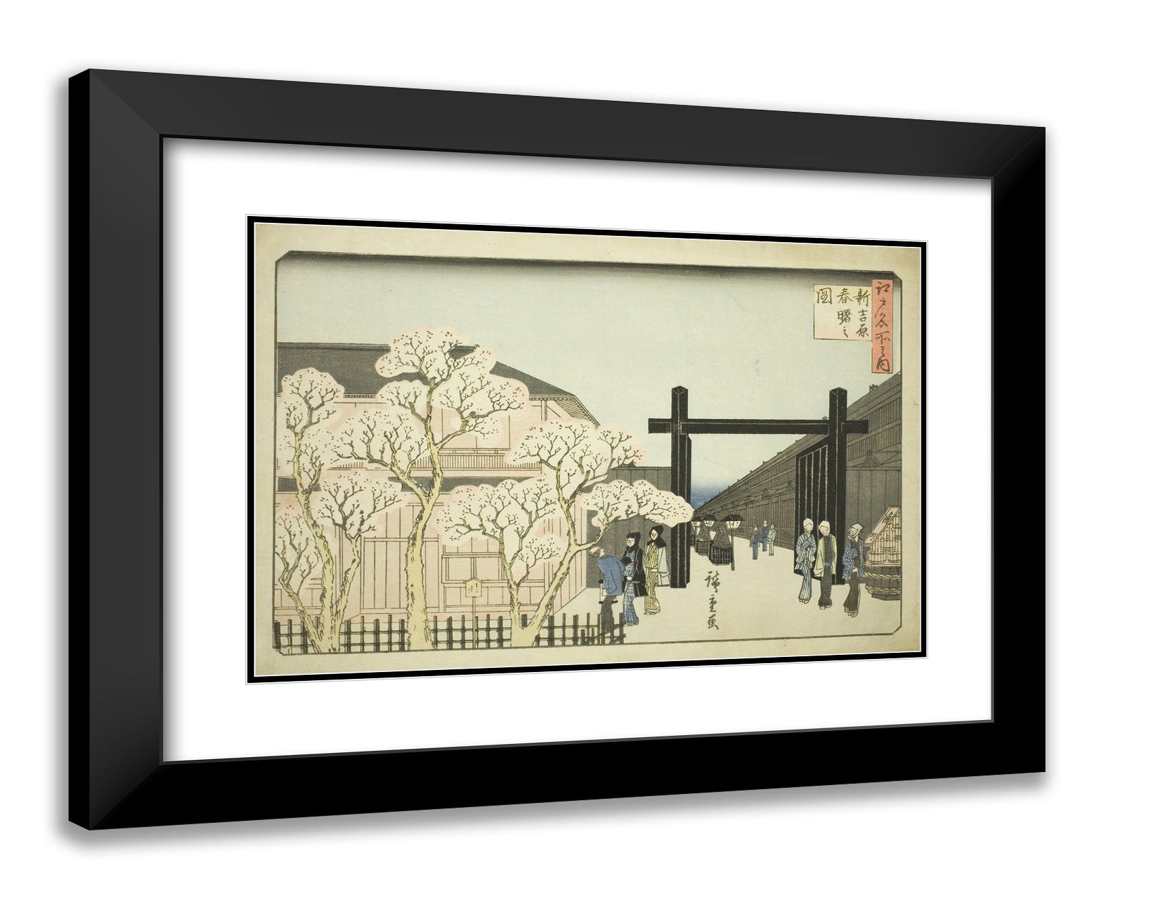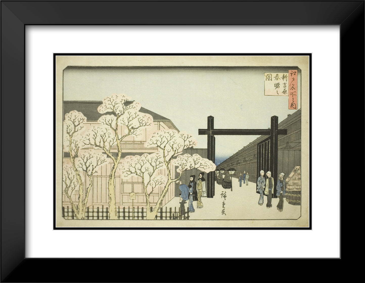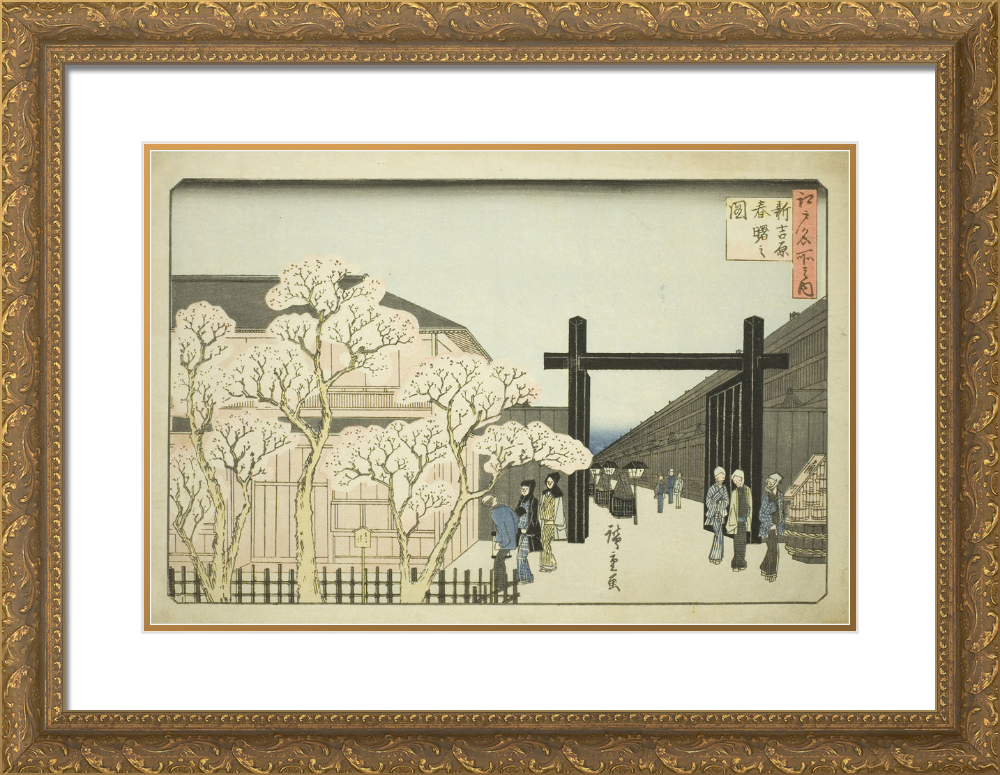 / Spring Dawn in the New Yoshiwara (Shin Yoshiwara haru akebono no zu), from the series "Famous Places in Edo (Edo meisho no uchi)" by Utagawa Hiroshige