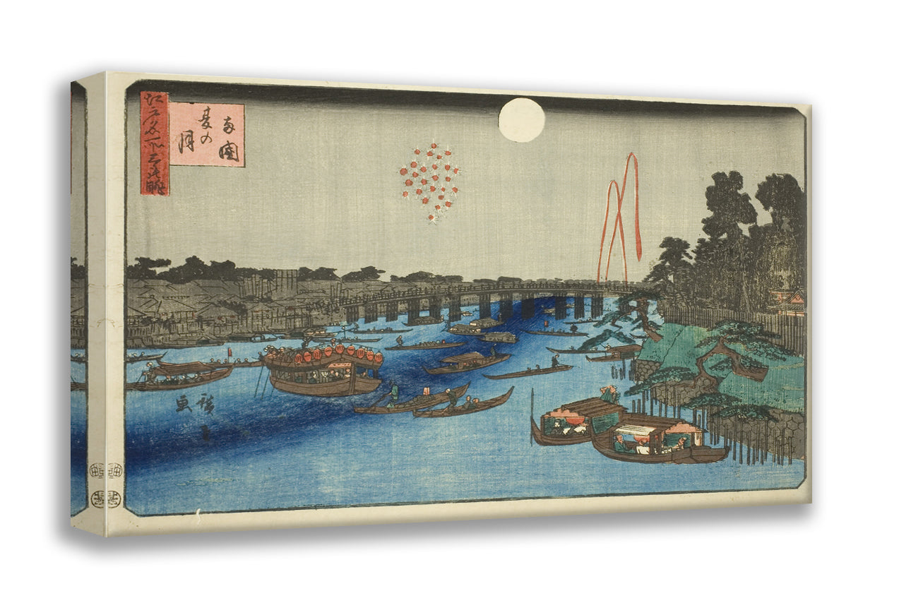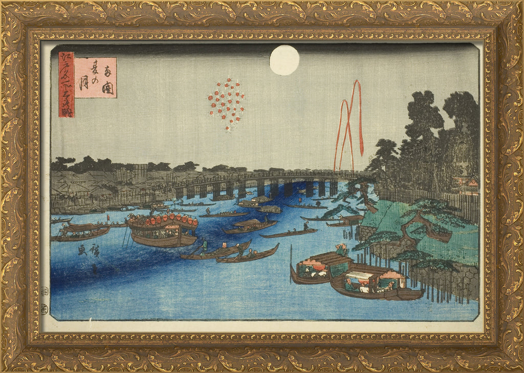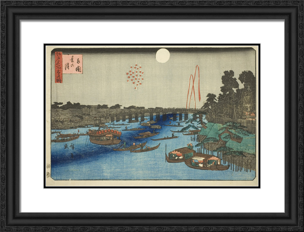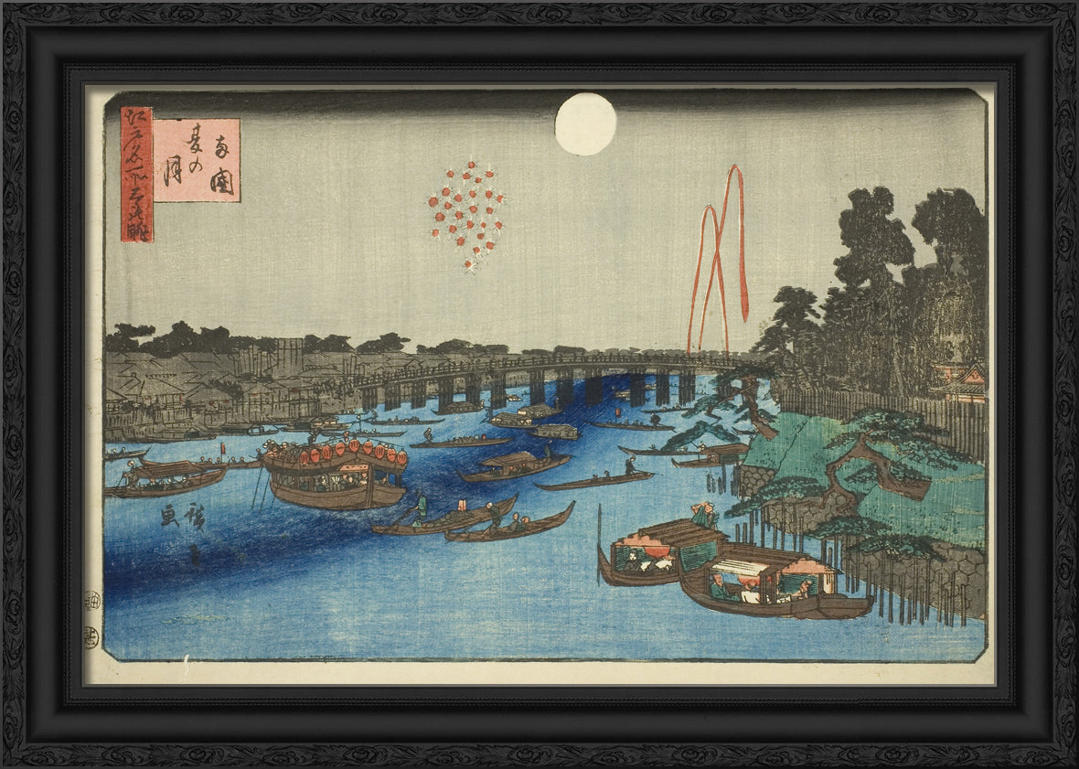 / Summer Moon over Ryogoku (Ryogoku natsu no tsuki), from the series "Three Views of Famous Places in Edo (Edo meisho mittsu no nagame)" by Utagawa Hiroshige