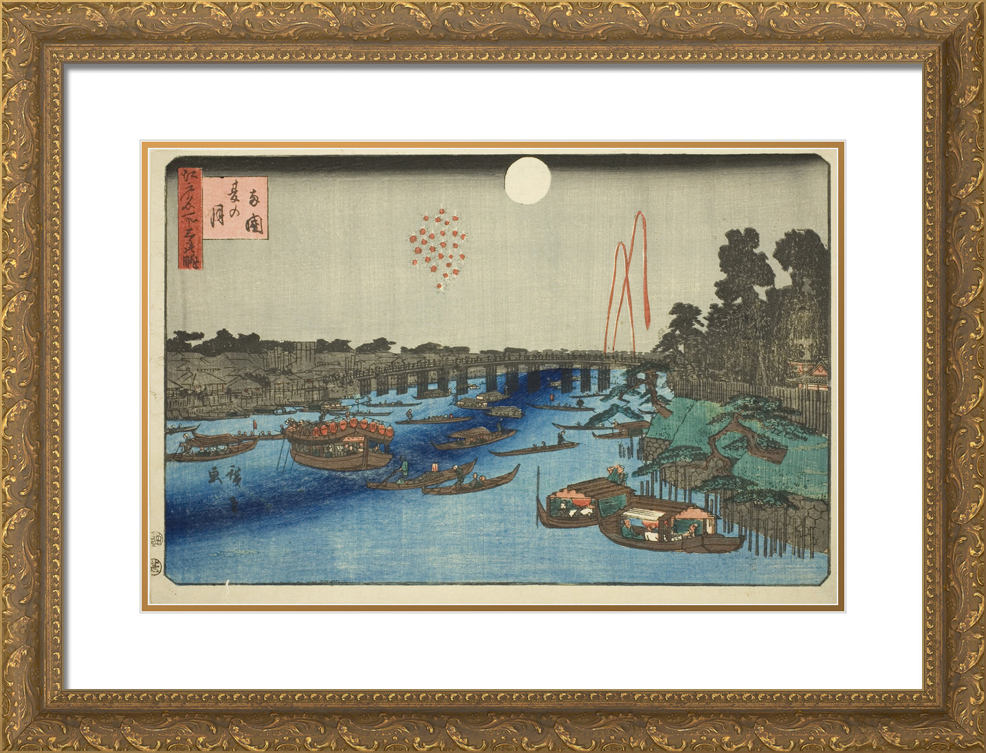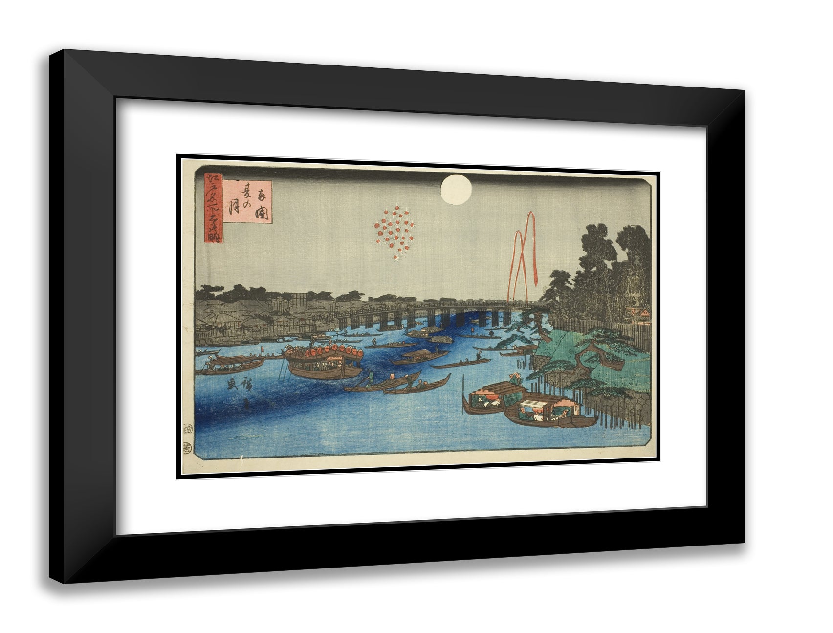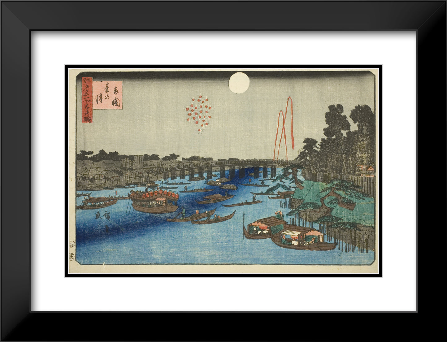 / Summer Moon over Ryogoku (Ryogoku natsu no tsuki), from the series "Three Views of Famous Places in Edo (Edo meisho mittsu no nagame)" by Utagawa Hiroshige