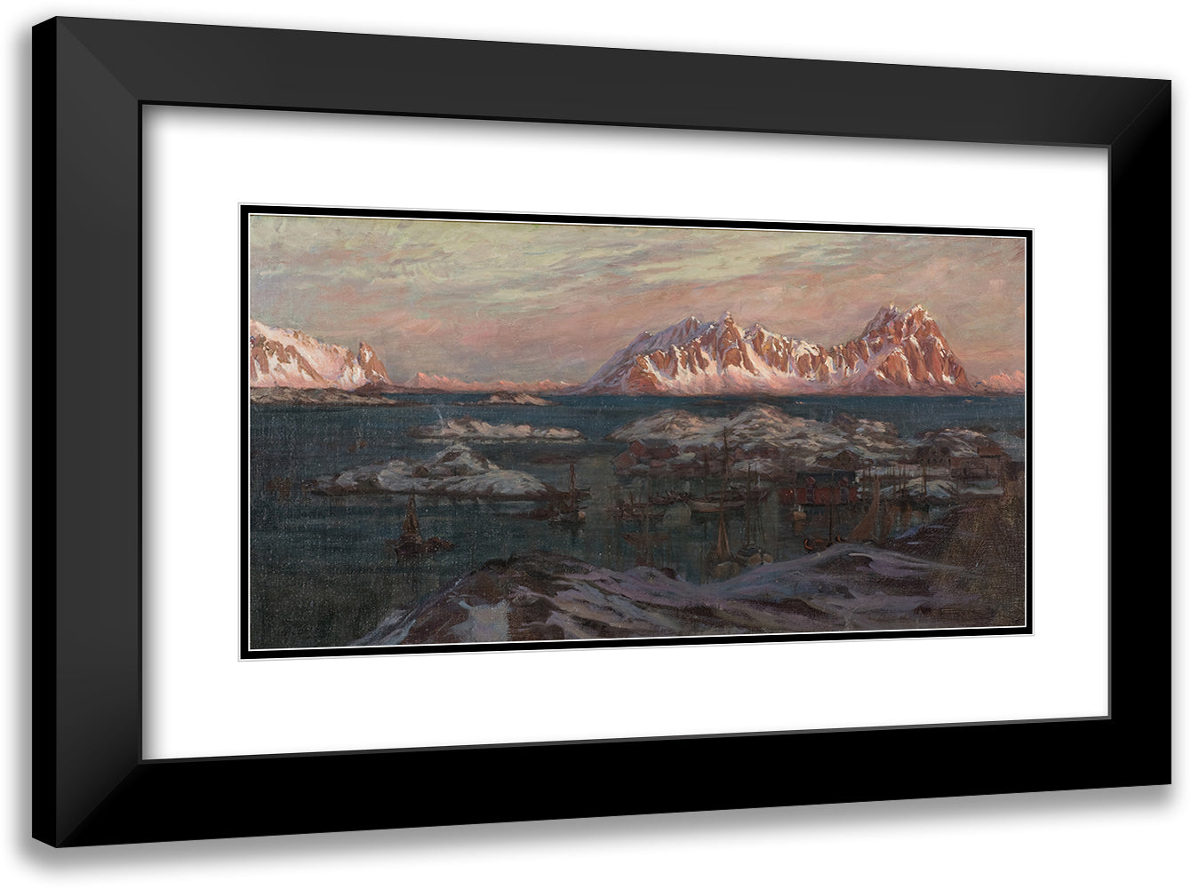 Fishing Harbour with Sunlit Mountains. Study from North Norway