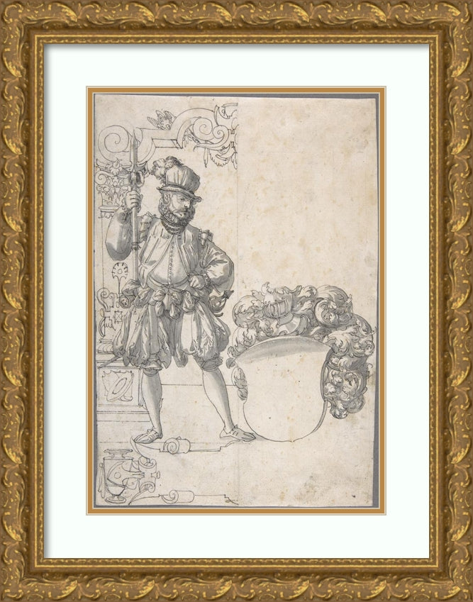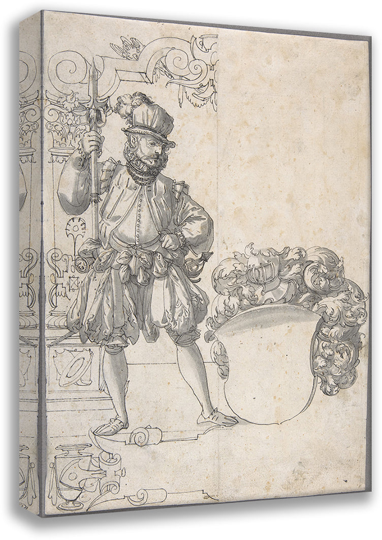 / Design for Stained Glass; a Halbardier by an Unfinished Coat of Arms (ca. 1570-80)