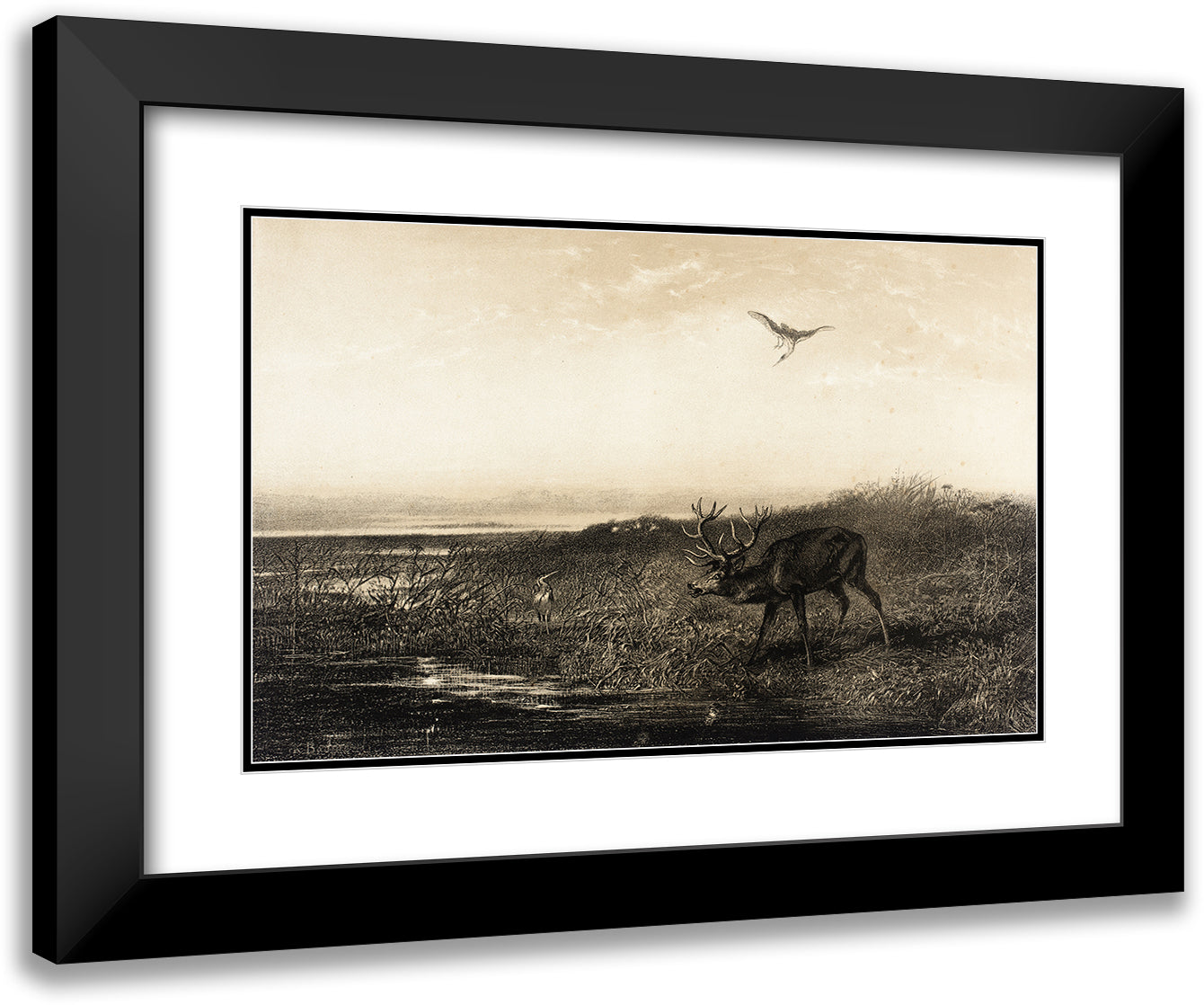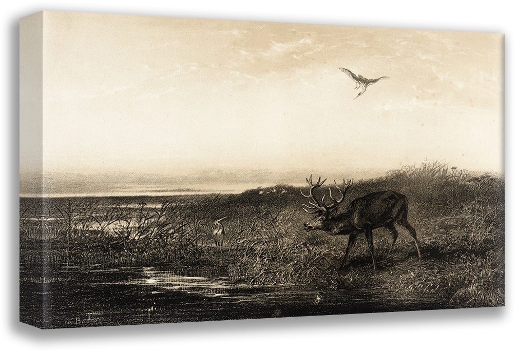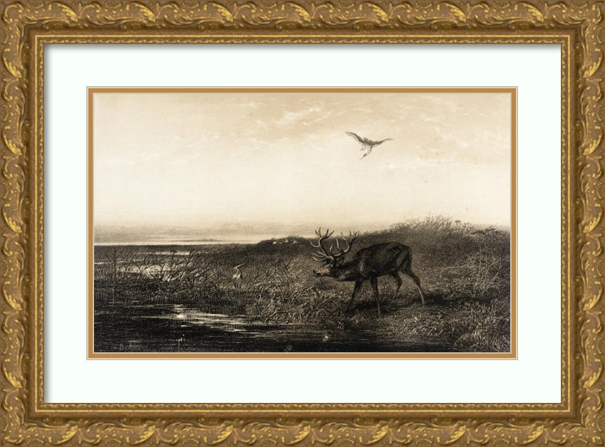 The Evening; Cerf and Herons (Evening; Stag and Herons) (1858)