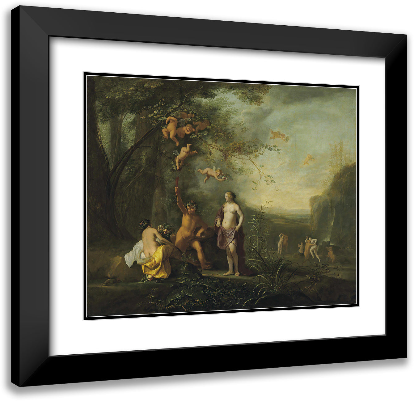 / Bacchus, Venus and Ceres Under a Grapevine in a Pastoral Landscape with Putti, Nymphs and Satyrs (1640)