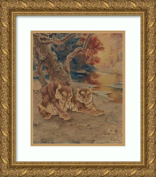 A Pair of Tigers Resting Under a Tree