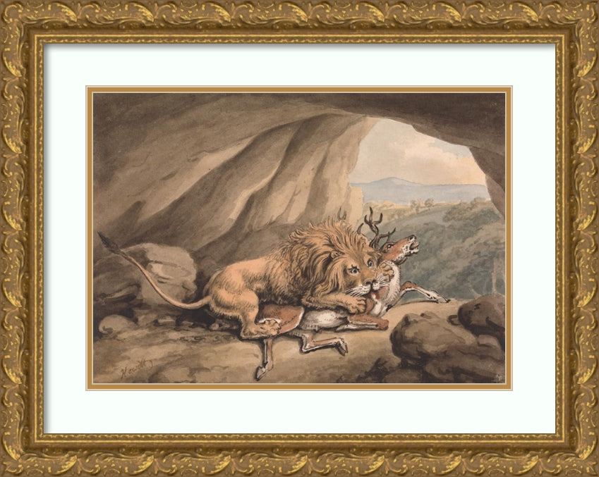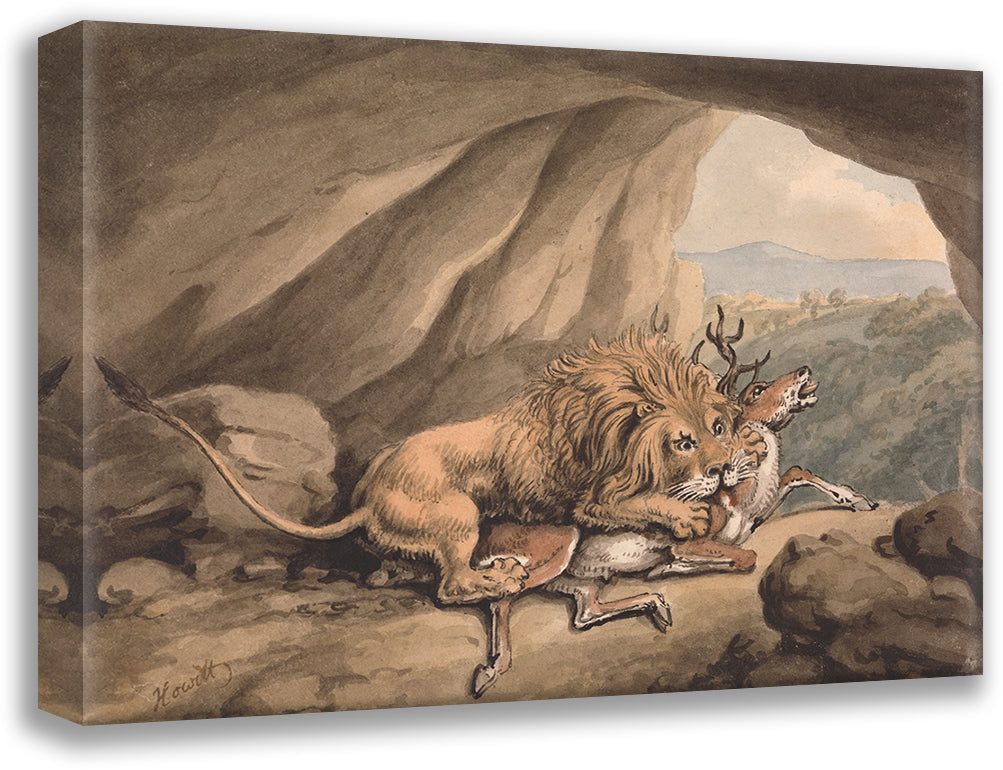 Lion Attacking a Stag
